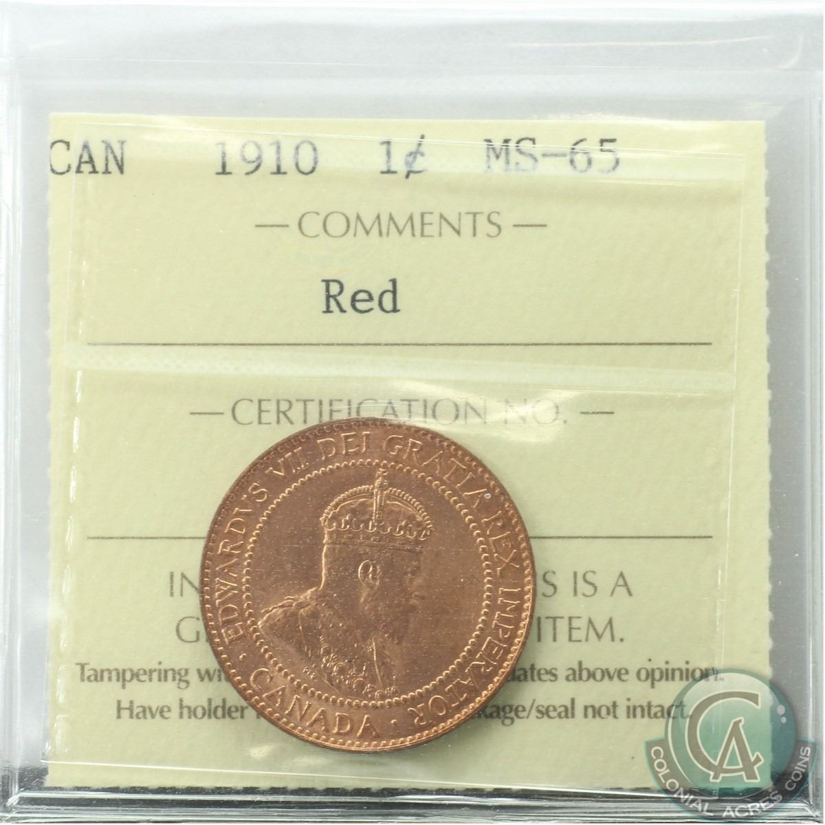 1-cent 1910 ICCS Certified MS-65 RED Tied for the 2nd Highest grade by ICCS.