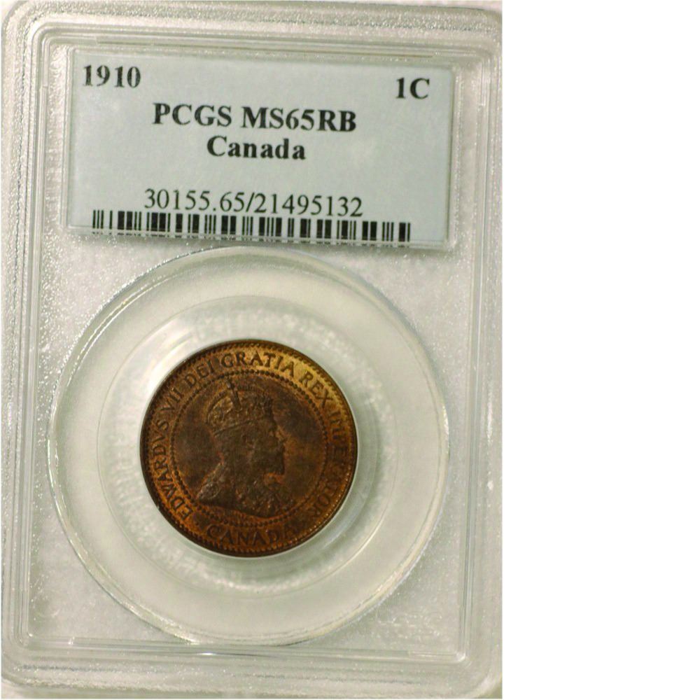 1-cent 1910 PCGS Certified MS-65 RB. An excellent example of this last year Edward Large Cent. Coin is well struck with lots of underlying mint luster.