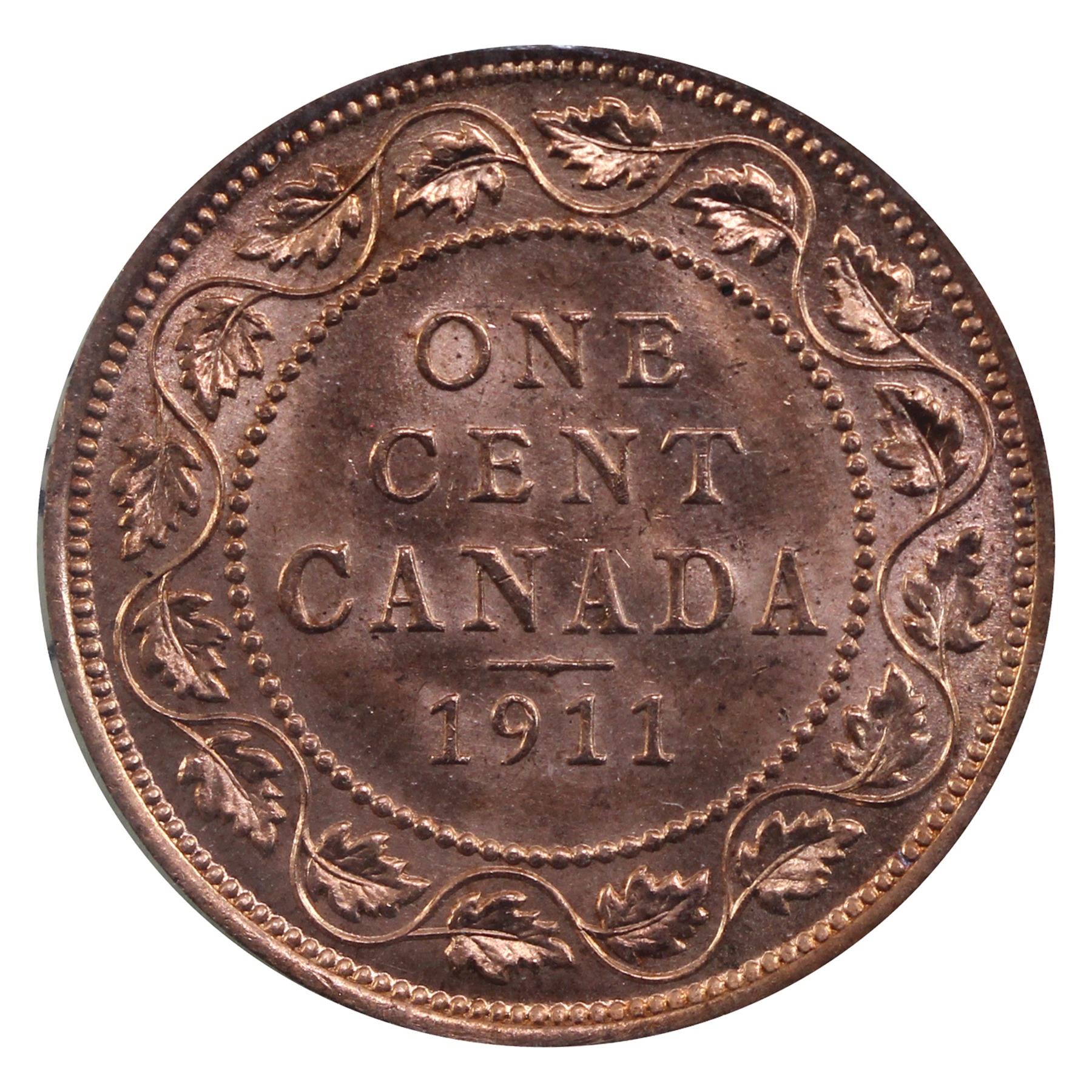 1-cent 1911 ICCS Certified MS-65 RED. Bright flashy coin with Marbling luster throughout.