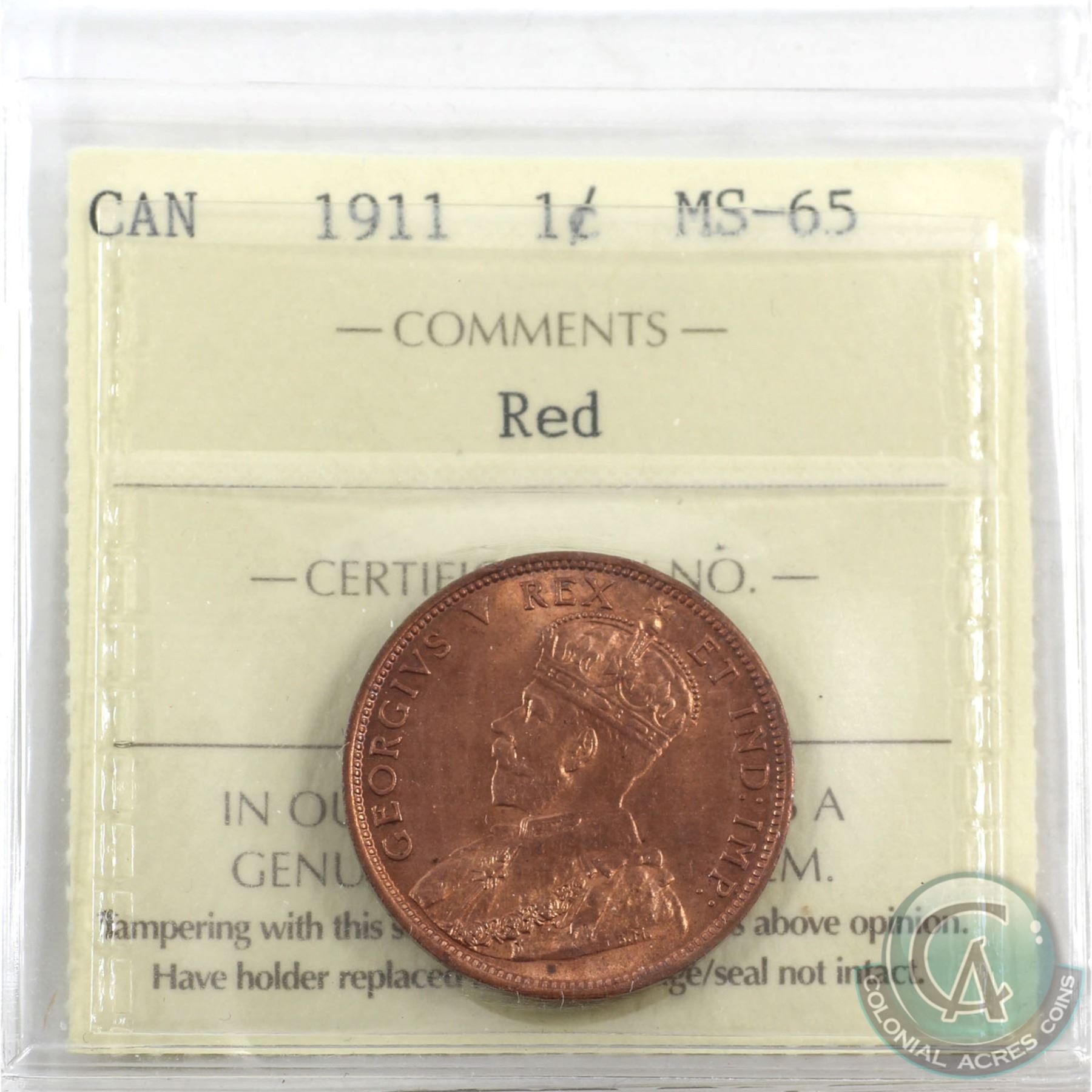 1-cent 1911 ICCS Certified MS-65 Red. Attractive lustre throughout!