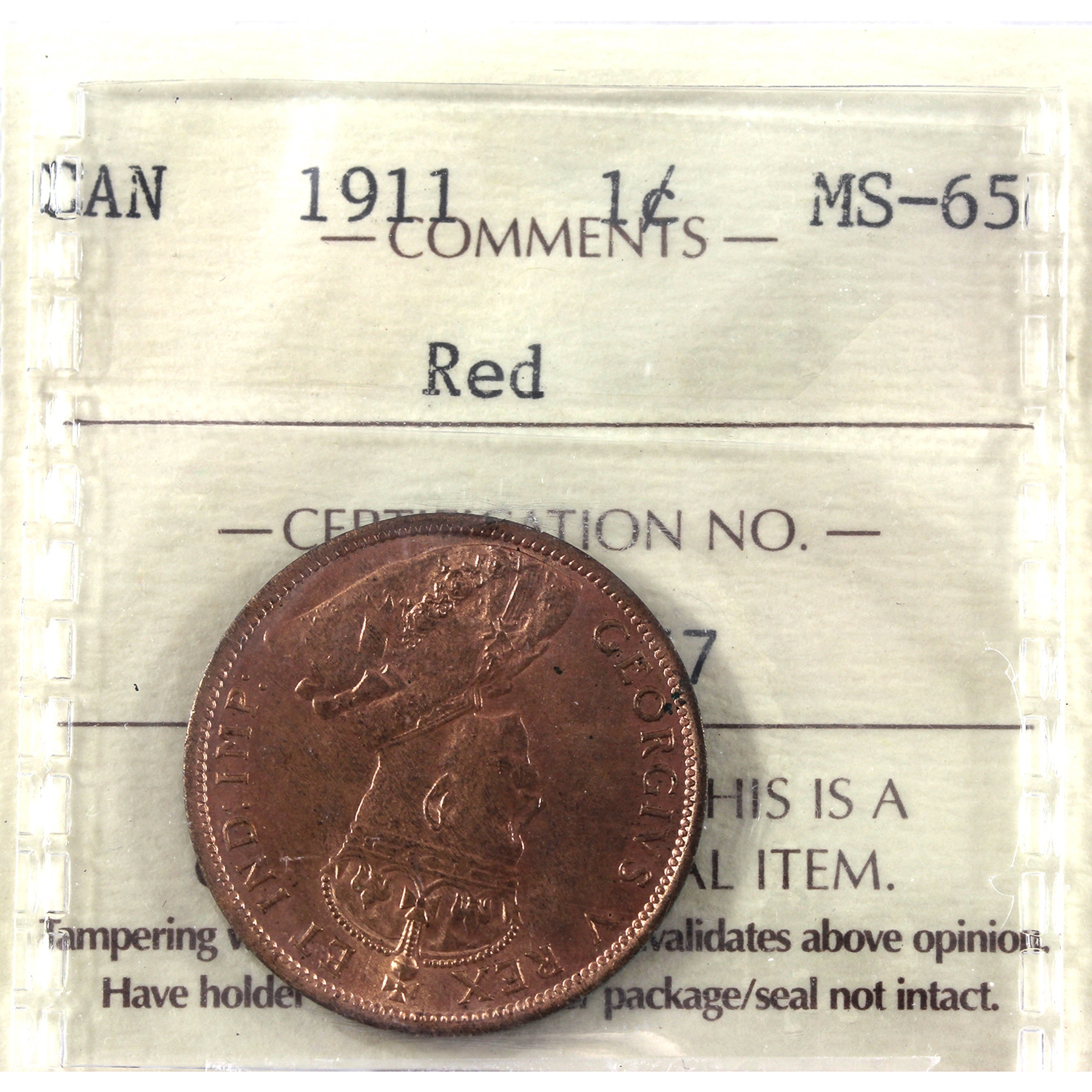 1-cent 1911 ICCS MS65 Red