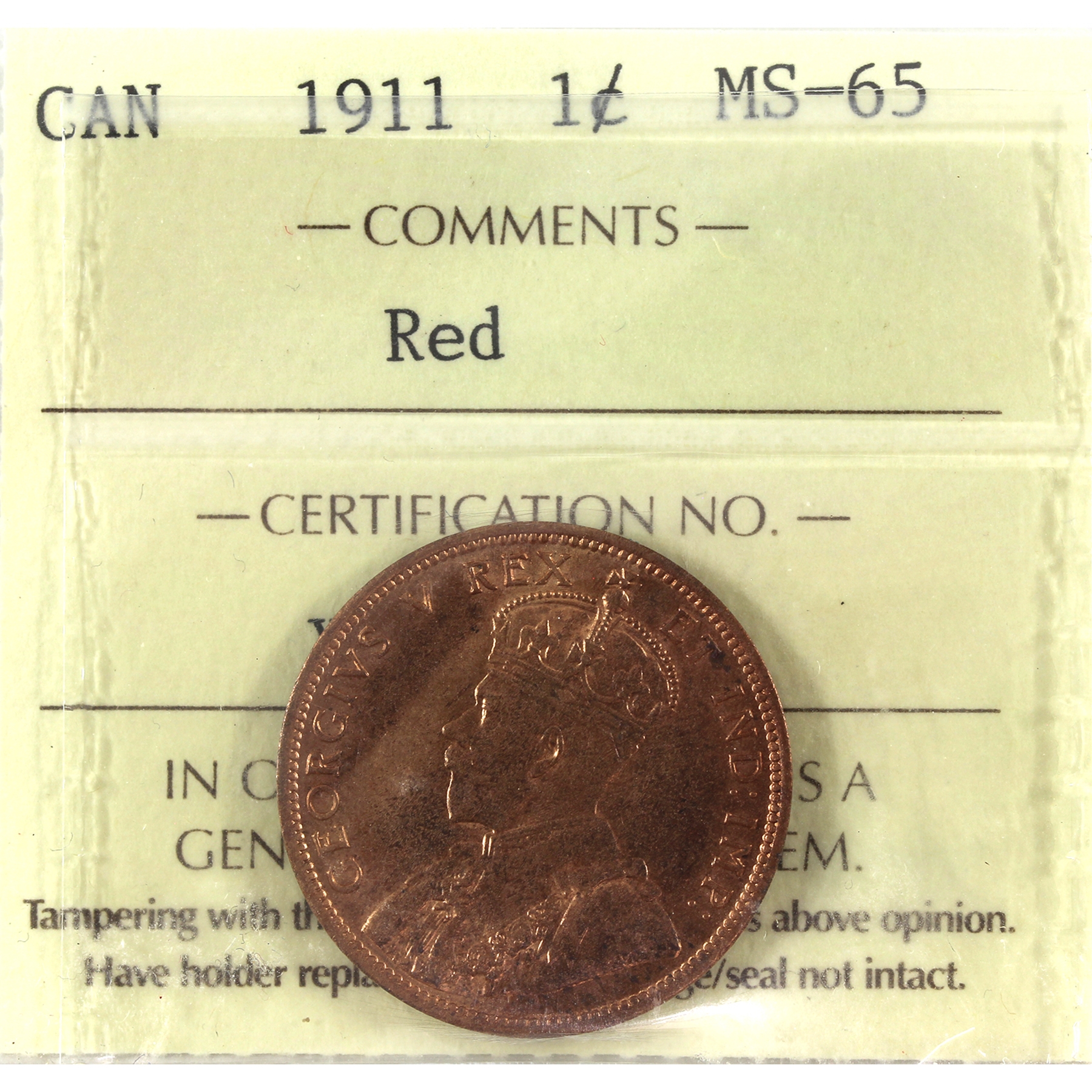 1-cent 1911 ICCS MS65 Red