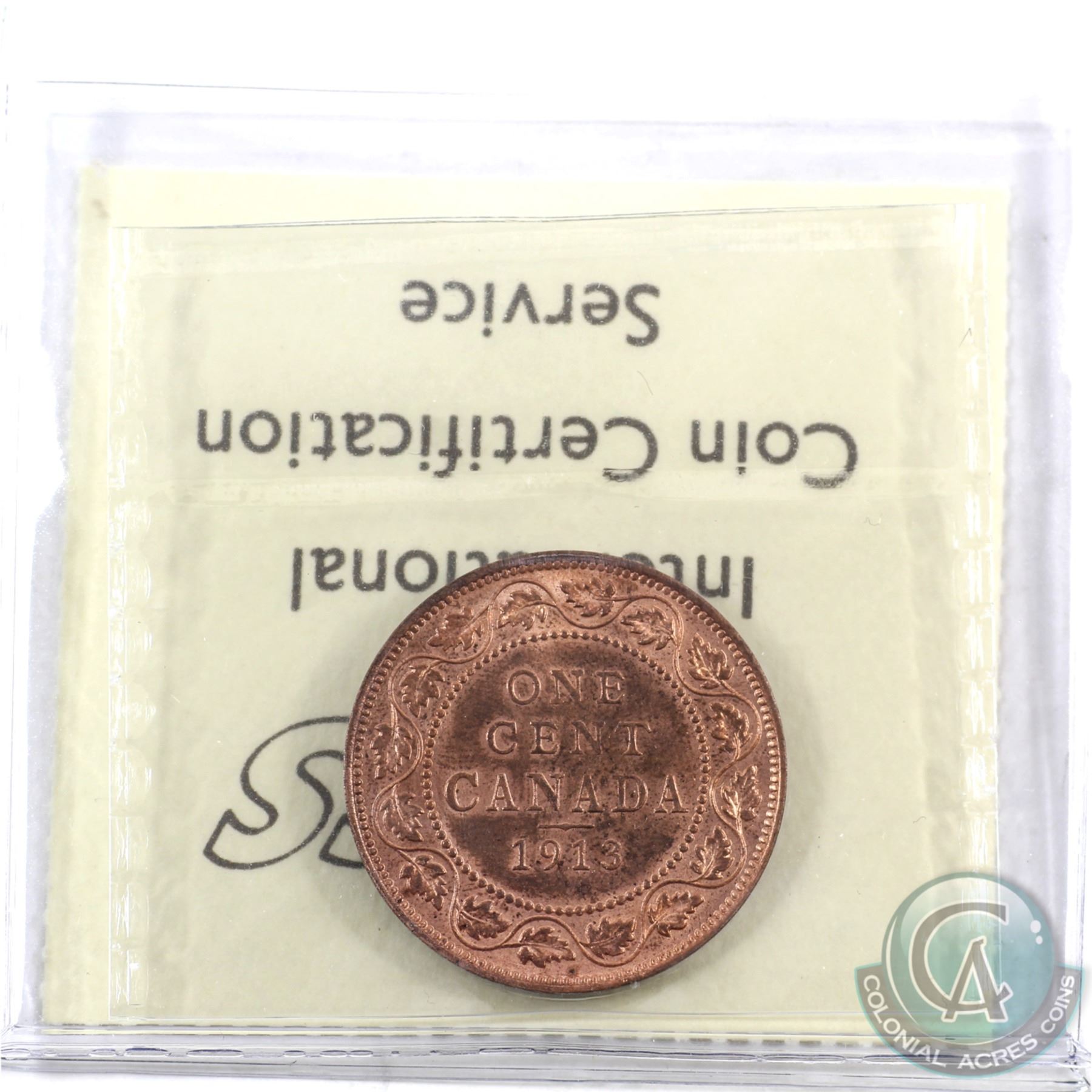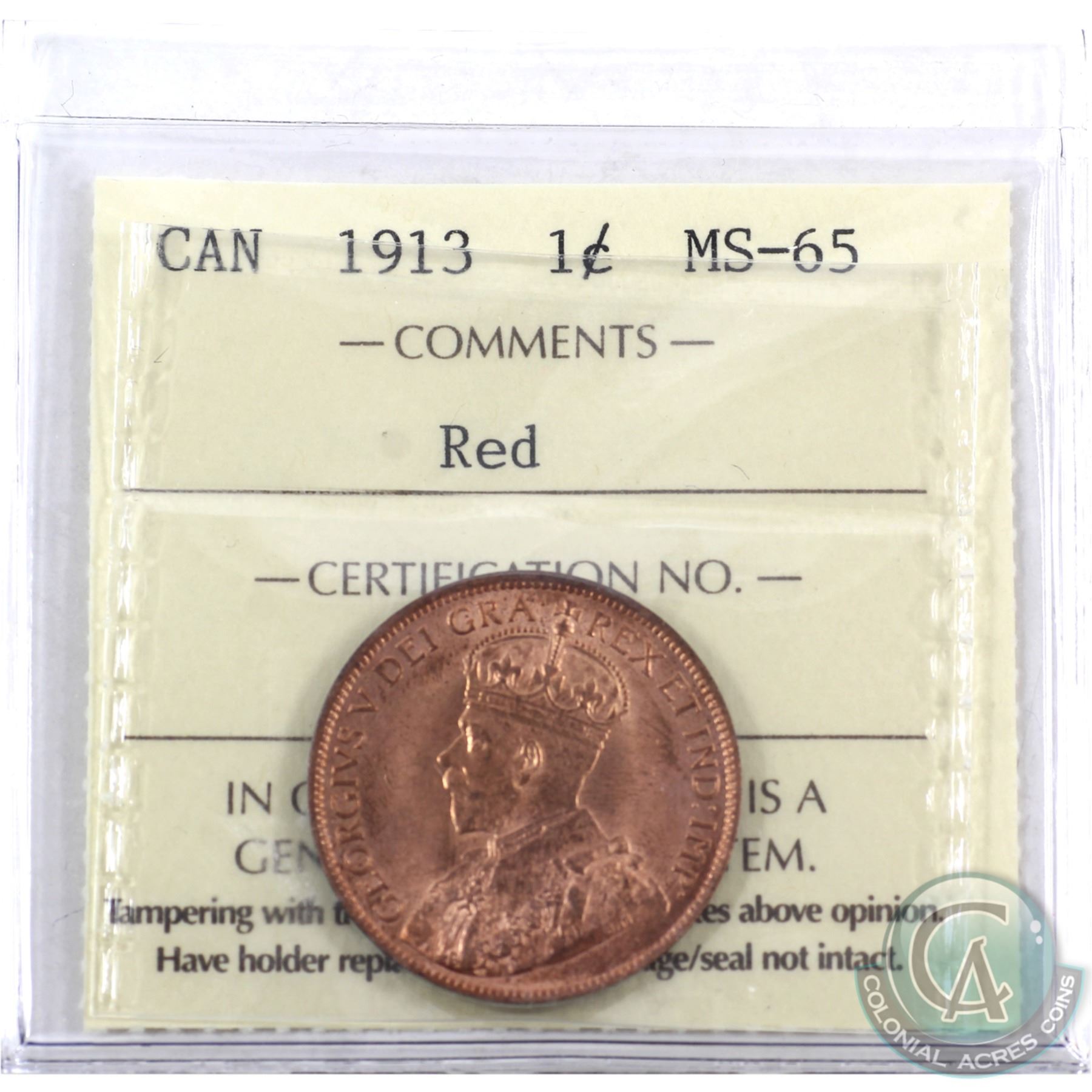 1-cent 1913 ICCS Certified MS-65 Red. Nice full Red coin with choice eye appeal.