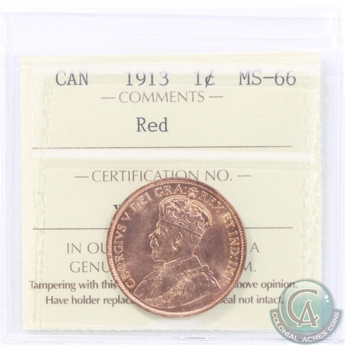 1-cent 1913 ICCS Certified MS-66 RED! Tied For the Finest Known Pop=7! A bright flashy coin with exceptional eye appeal.