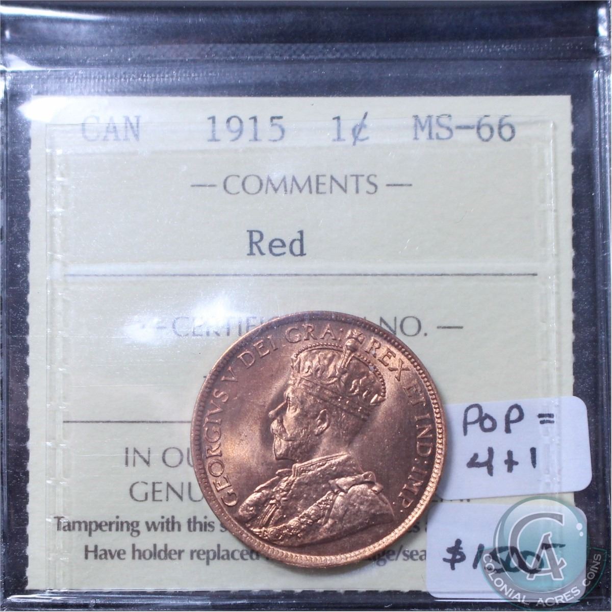 1-cent 1915 ICCS Certified MS-66 Red. Only one graded higher By ICCS!