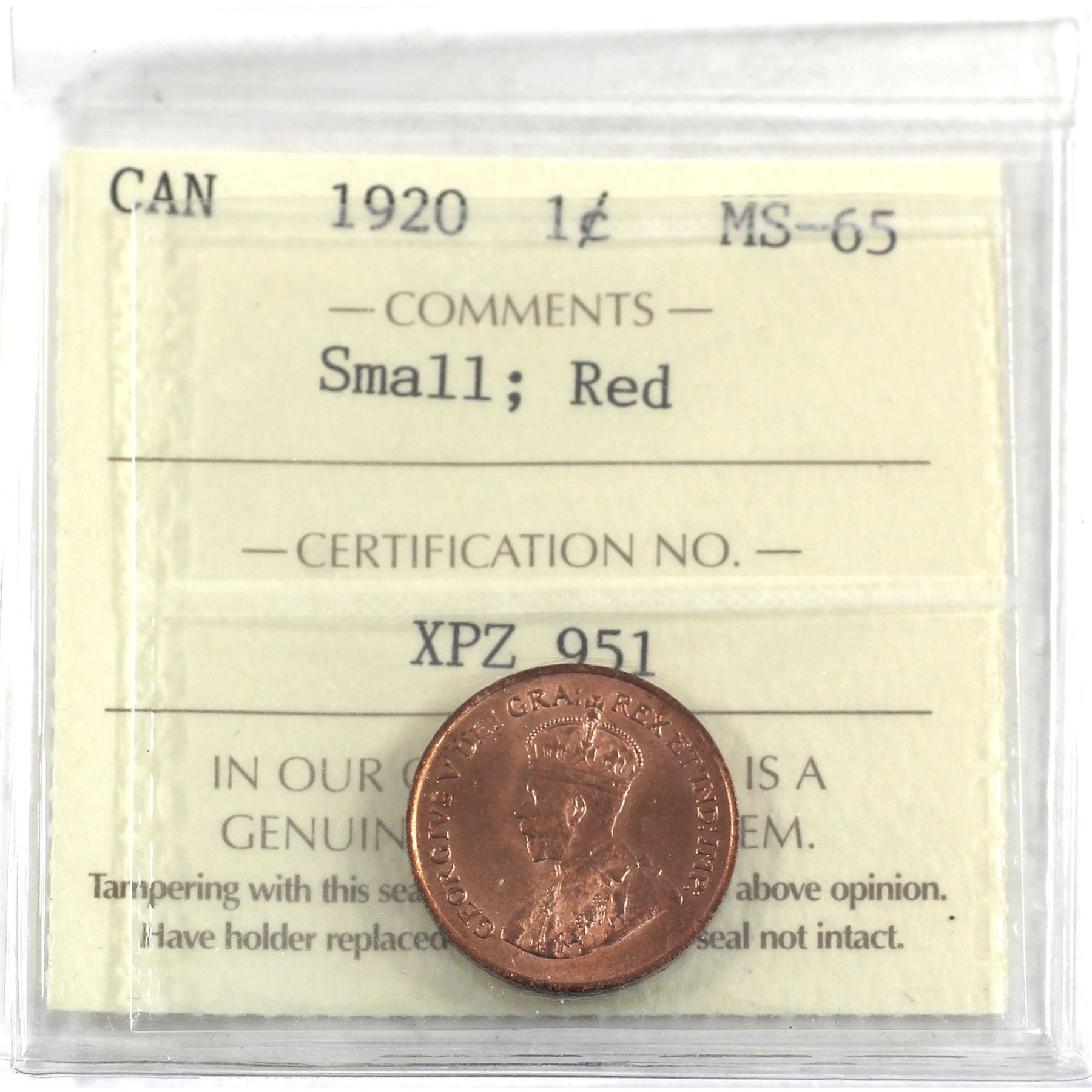 1-cent 1920 Small ICCS Certified MS-65 RED! A Full red coin with exceptional eye appeal worth a premium bid!