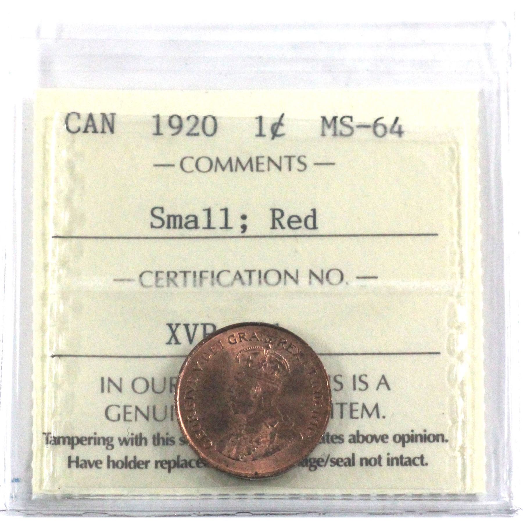 1-cent 1920 small ICCS Certified MS-64 RED. Near full red with great eye appeal.