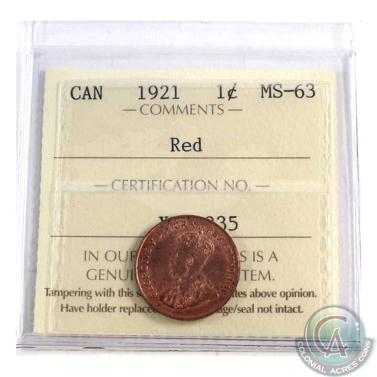 1-cent 1921 ICCS Certified MS-63 Red.