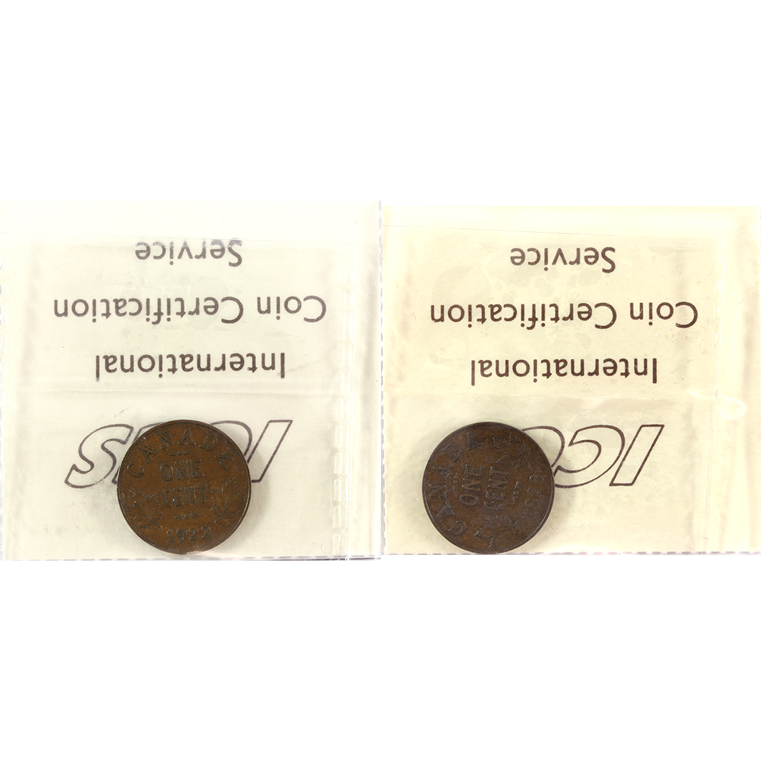1-cent 1922 & 1923 ICCS VF20. 2pcs.