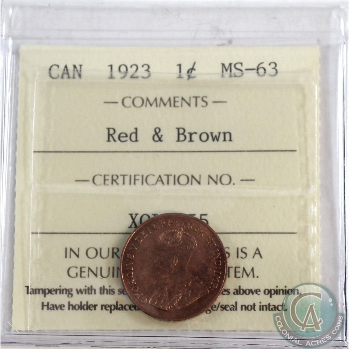1-cent 1923 ICCS Certified MS-63 RED & Brown *KEY DATE* Great Eye Appeal.
