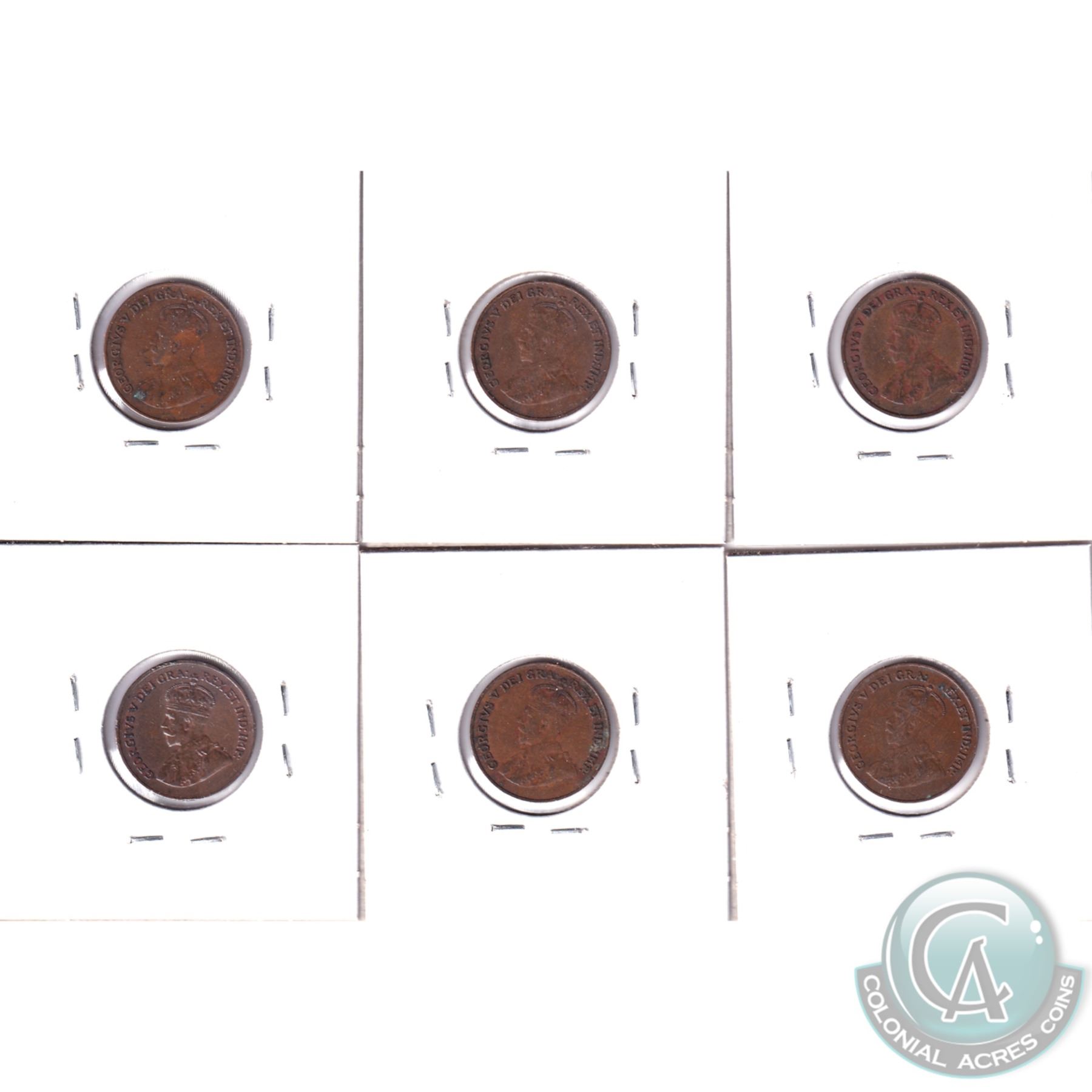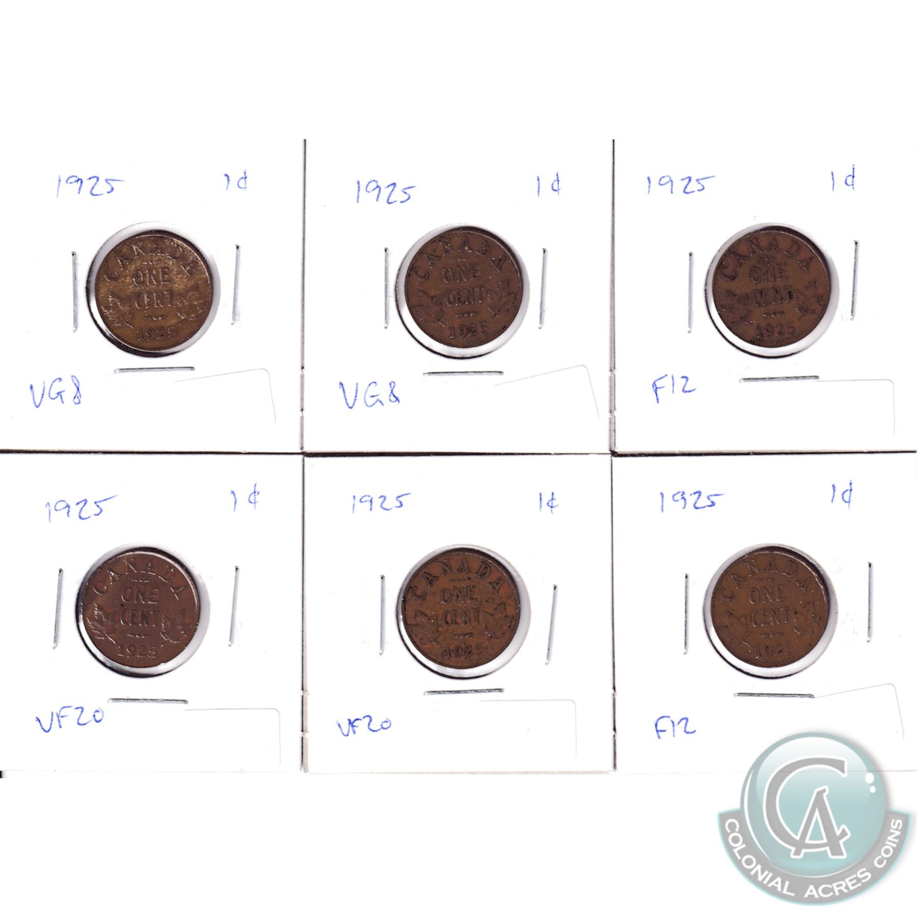 1-cent 1925: 2x VG, 2x Fine & 2x VF. 6pcs