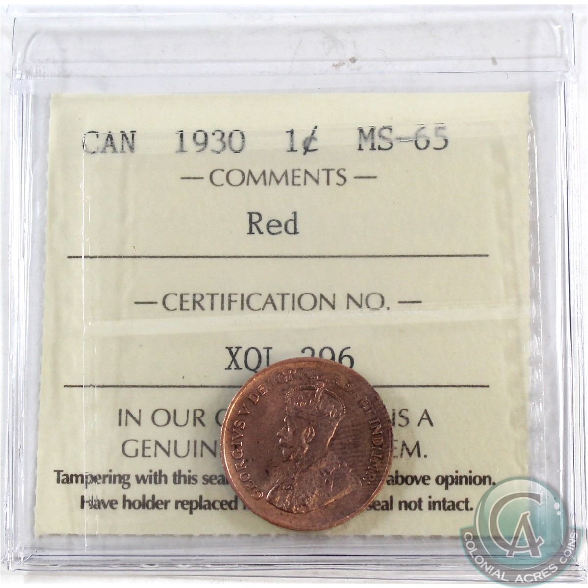 1-cent 1930 ICCS Certified MS-65 RED *LOW POP* Tied for the highest grade