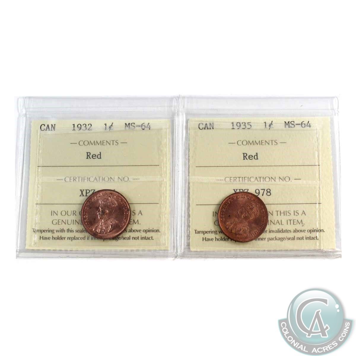 1-cent 1932 & 1935 Both ICCSMS-64 RED! 2pcs