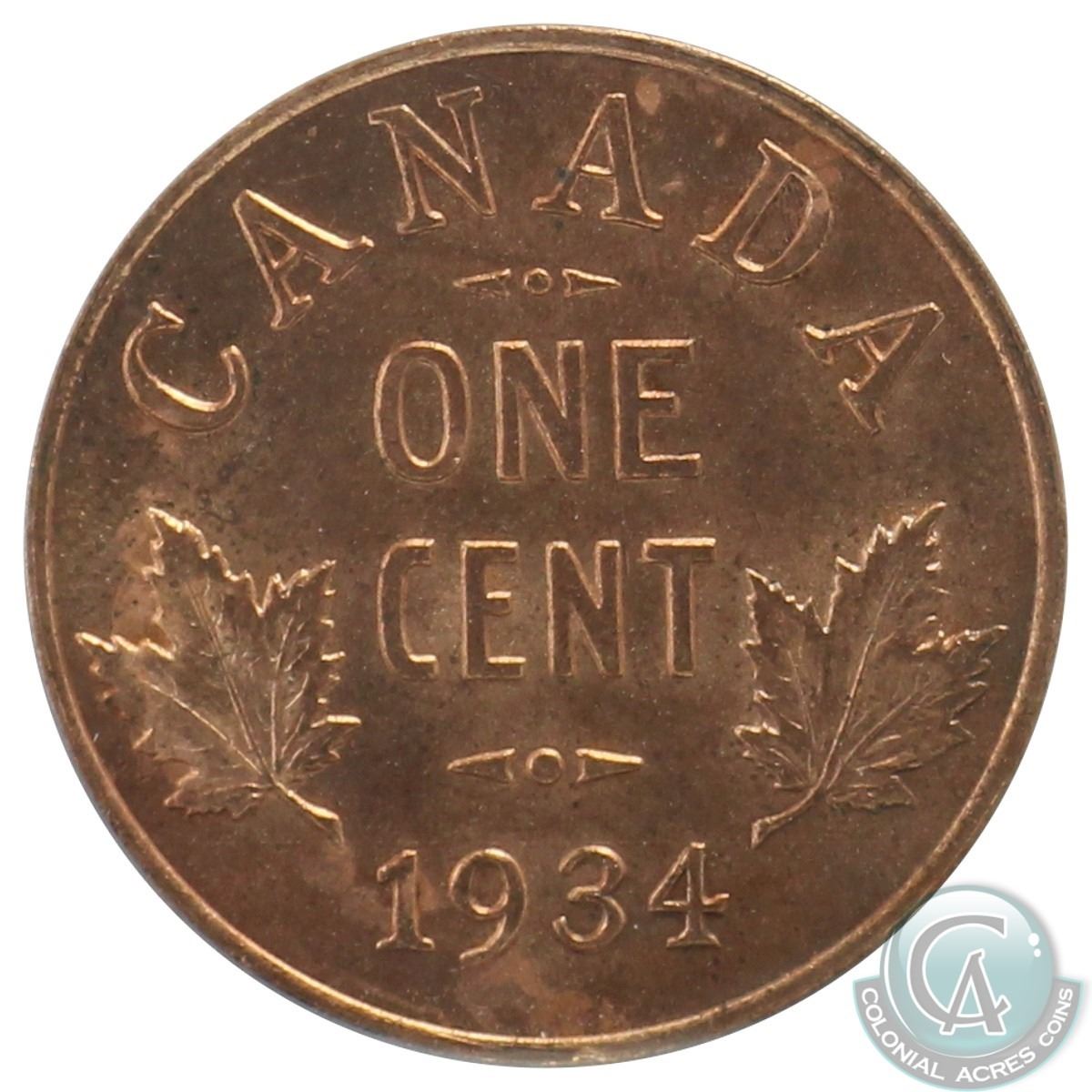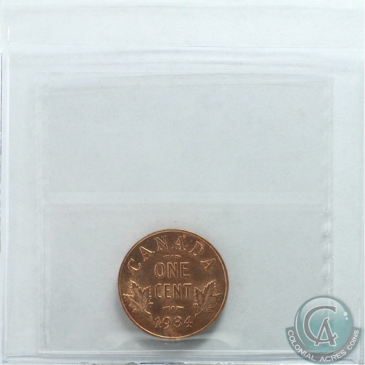1-cent 1934 ICCS Certified MS-65 RED. A Full red coin with choice eye appeal.