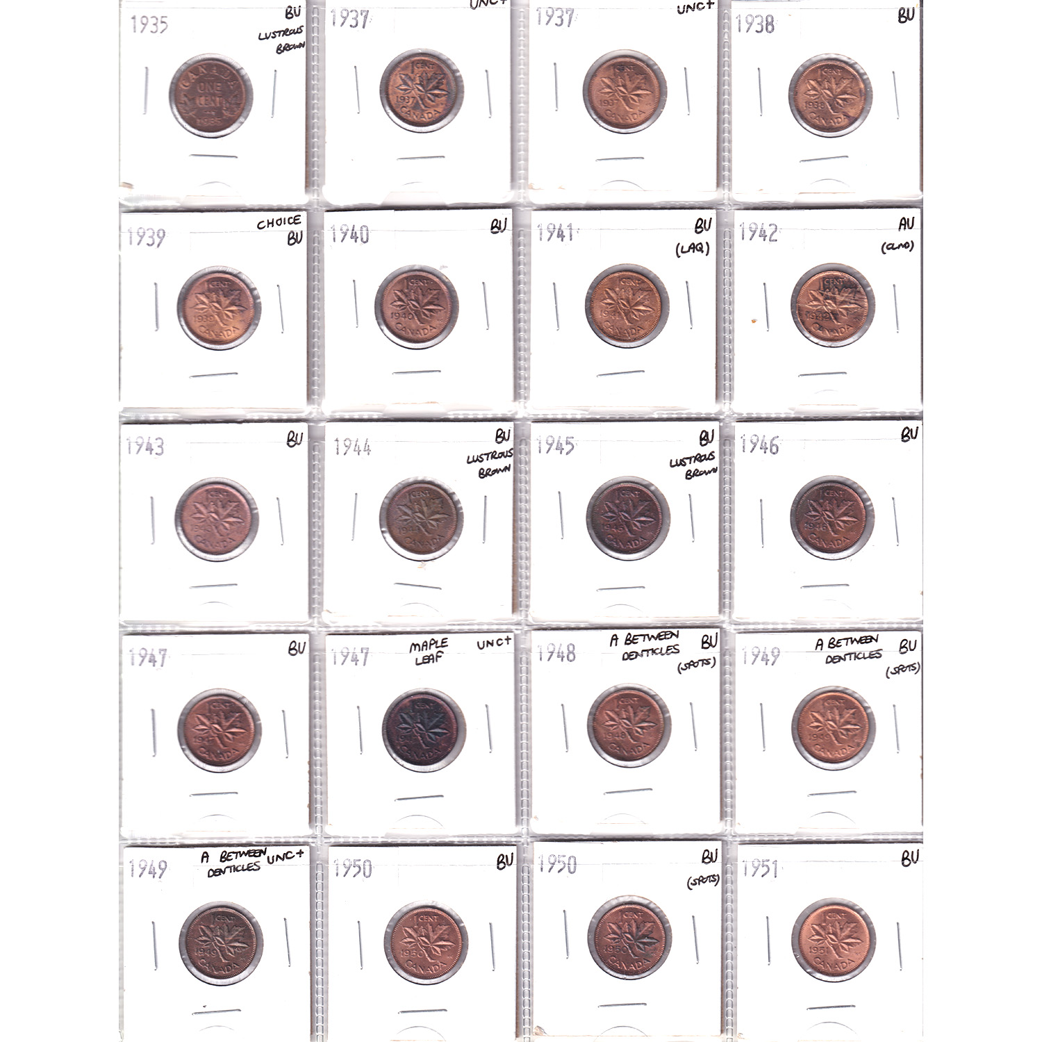 INCLUDES: 1935 BU Lustrous Brown, 1948 A Between Denticles BU (Spots), 1956 BU (Spot) & Many More!! Sold as is; please see images for details. 32pcs.