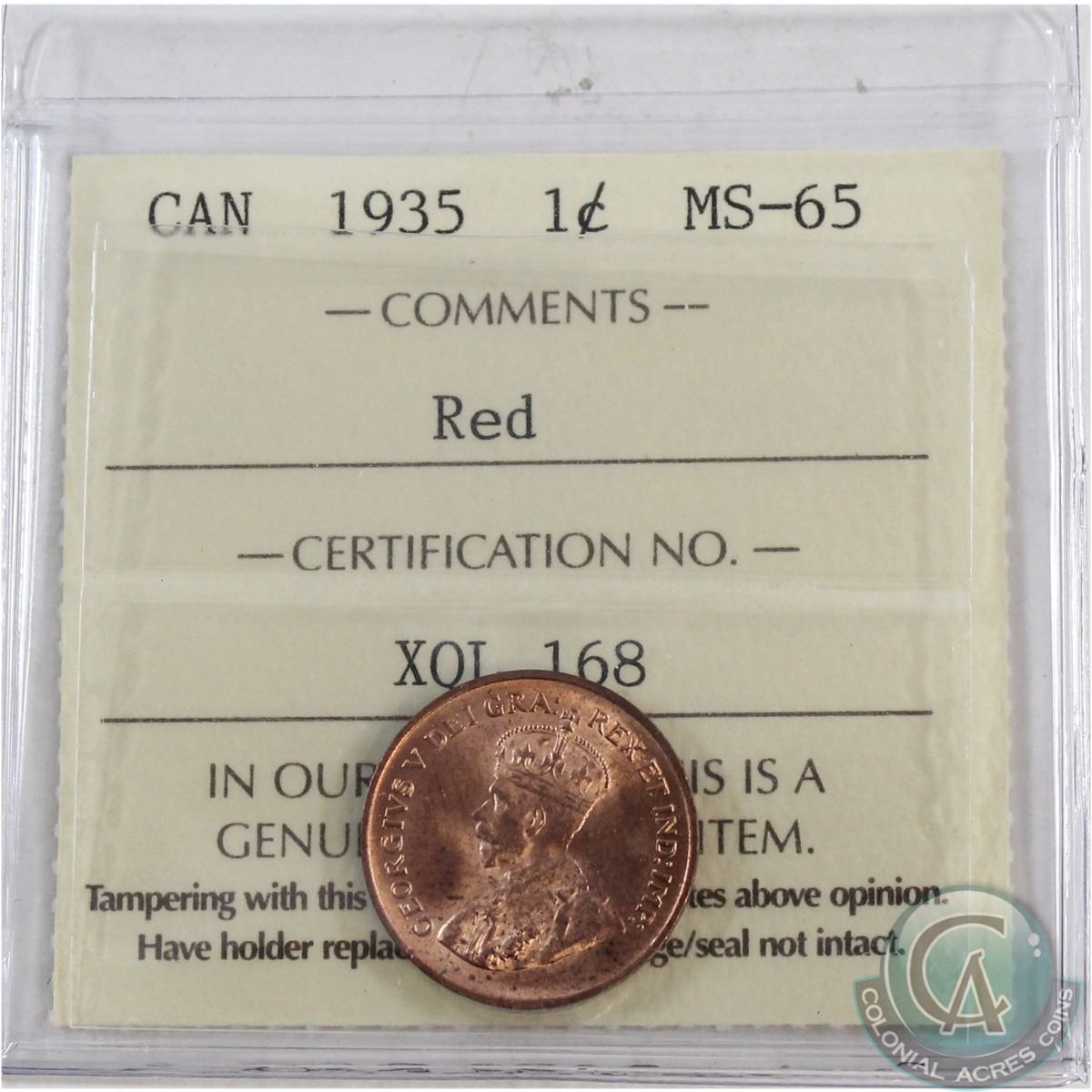 1-cent 1935 ICCS Certified MS-65 RED. Great Eye Appeal.