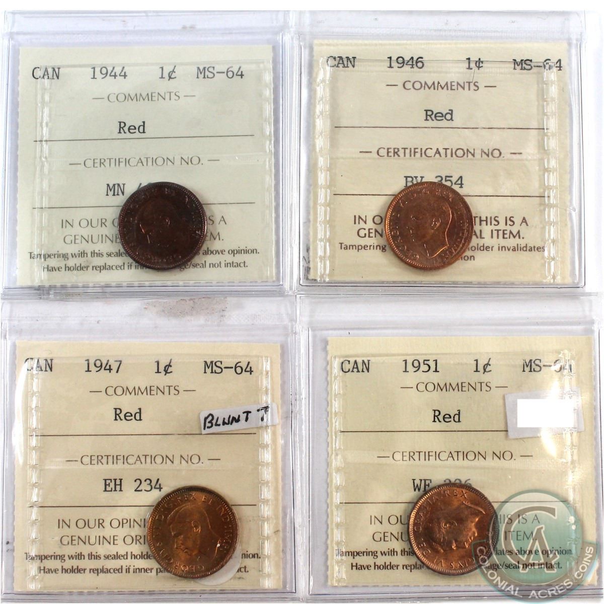 1-cent 1944, 1946, 1947 & 1951 ICCS MS-64 Red. 4pcs