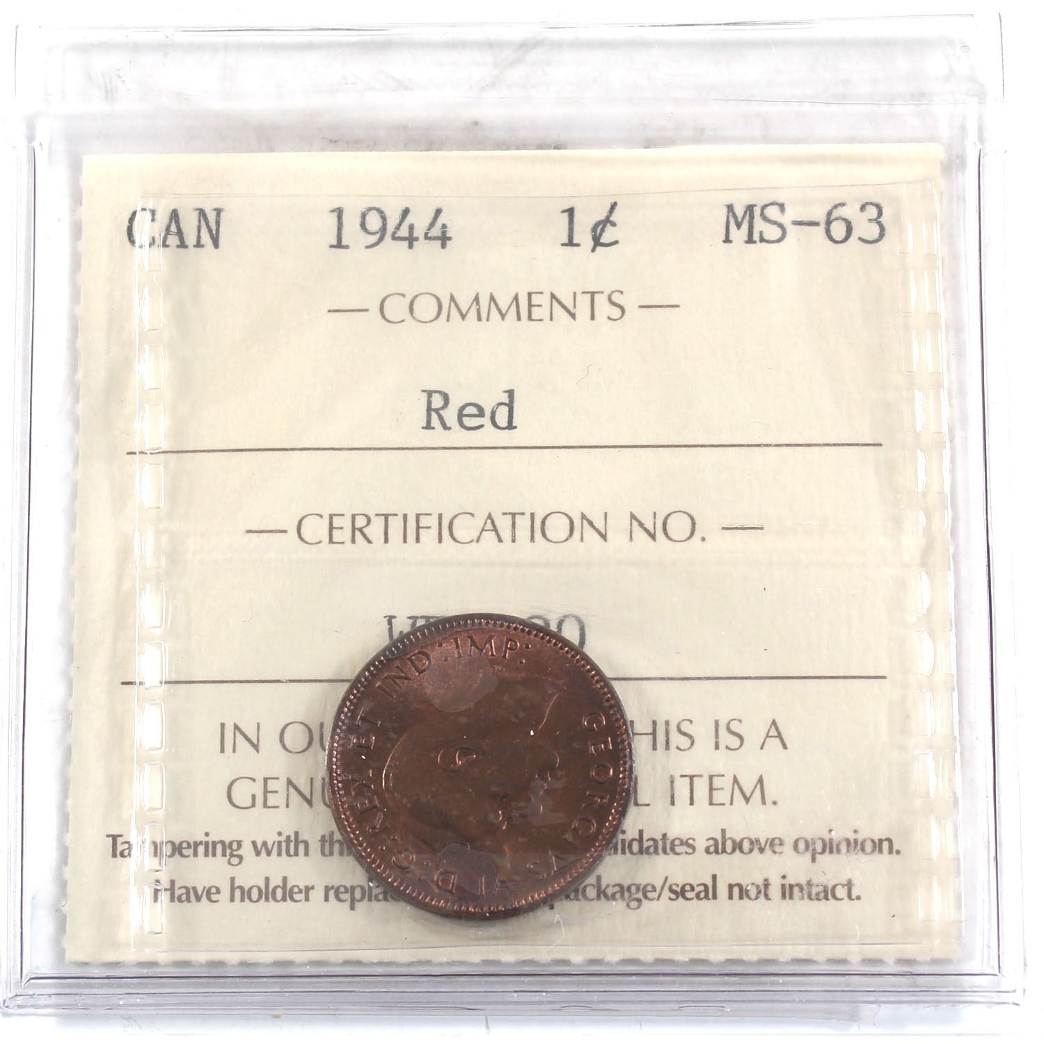 1-cent 1944 ICCS Certified MS-63 RED.