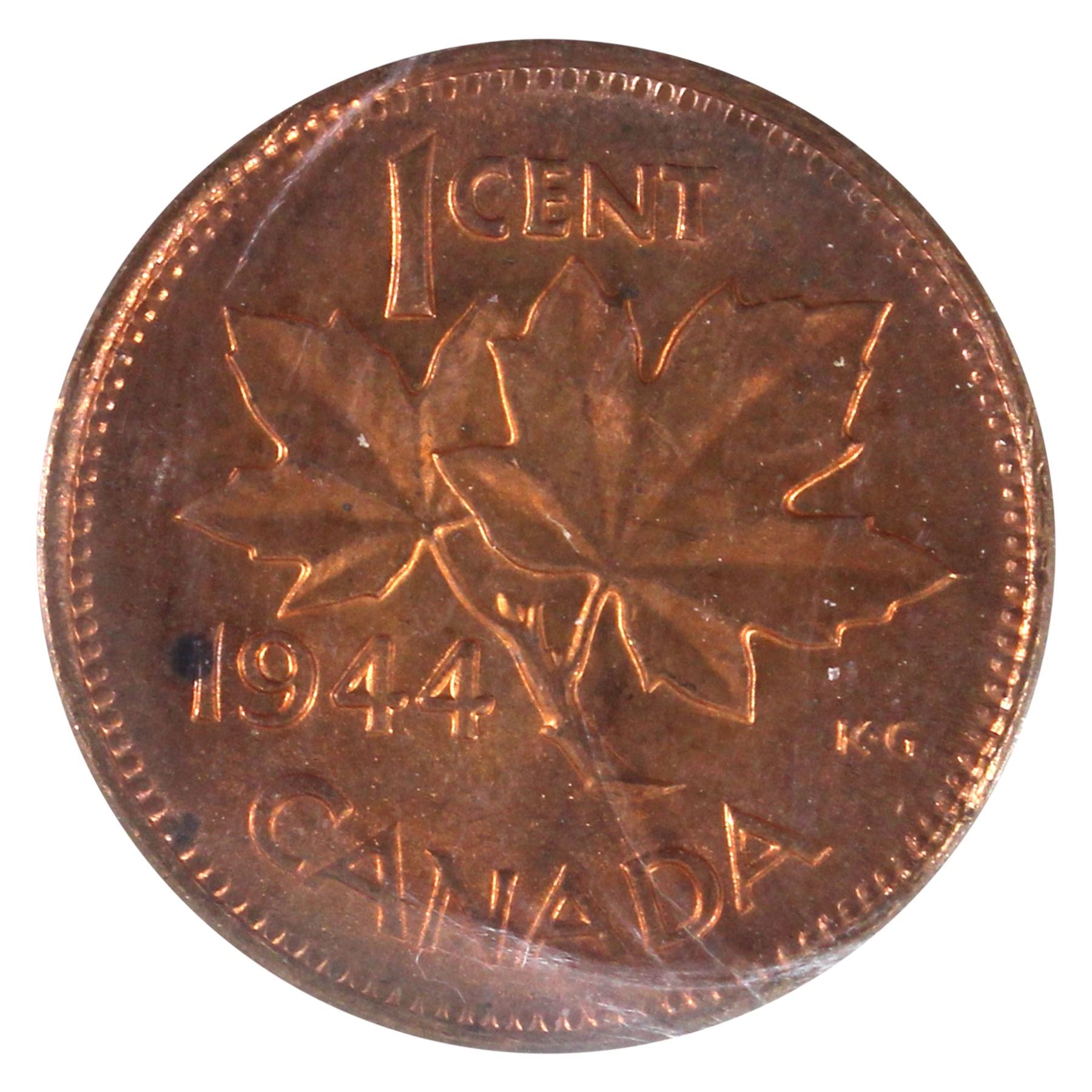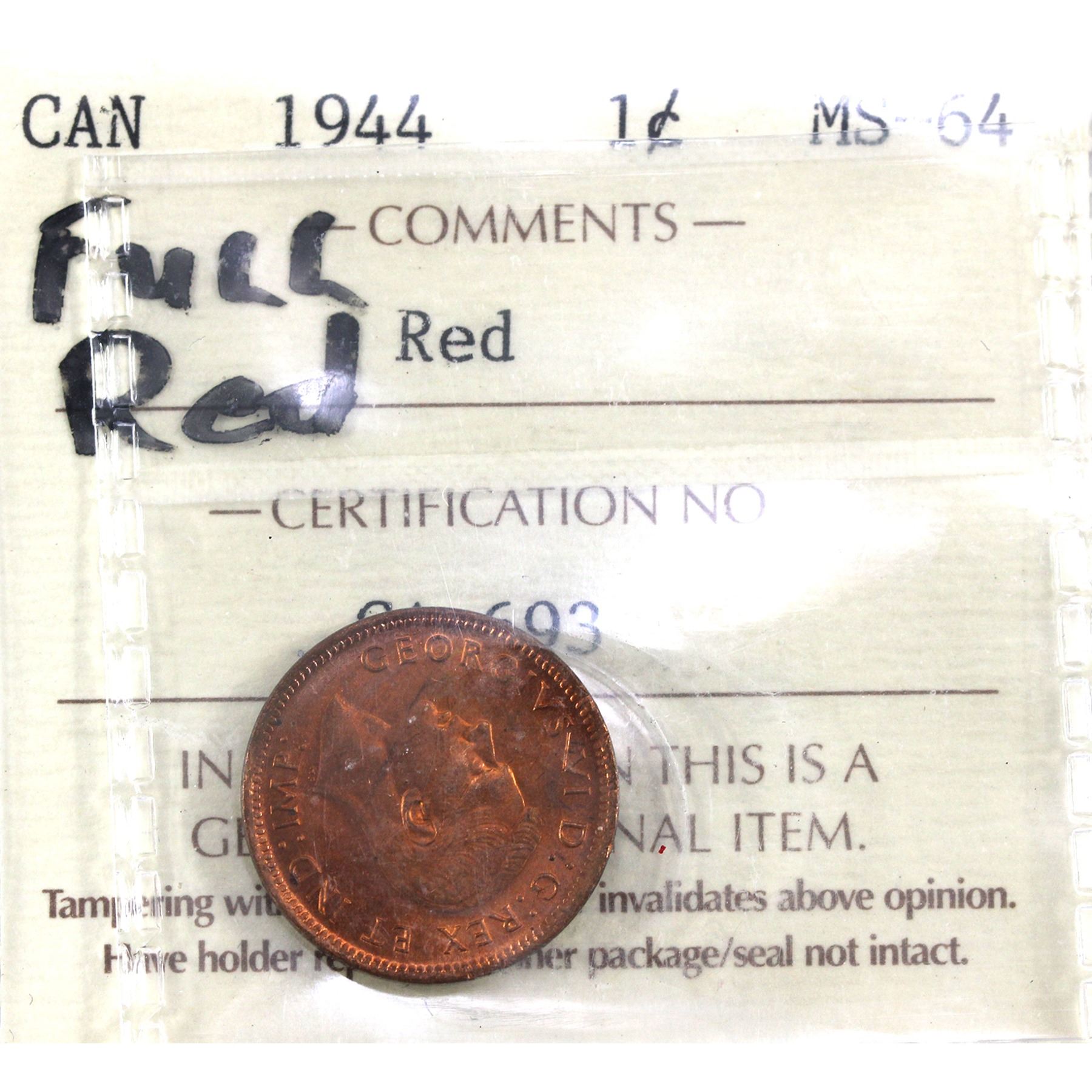 1-cent 1944 ICCS MS64 Red. Eye-Catching Piece with Full Lustre & Vivid Carmine-Red Hues Throughout. Writing on ICCS holder