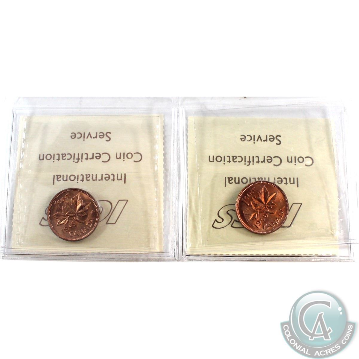 1-cent 1949 A off Denticle & 1949 A to Denticle ICCS MS-64 Red. 2pcs
