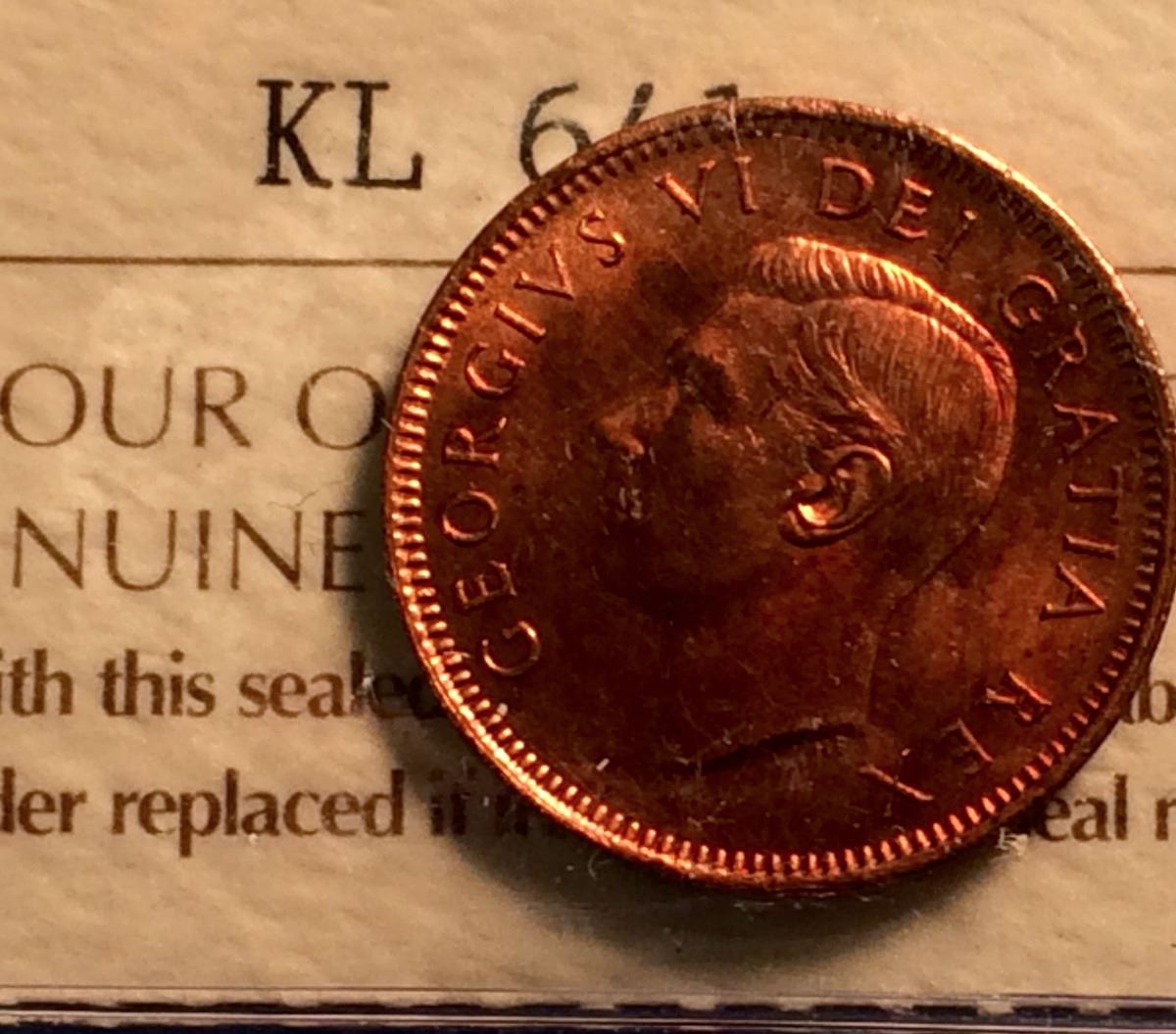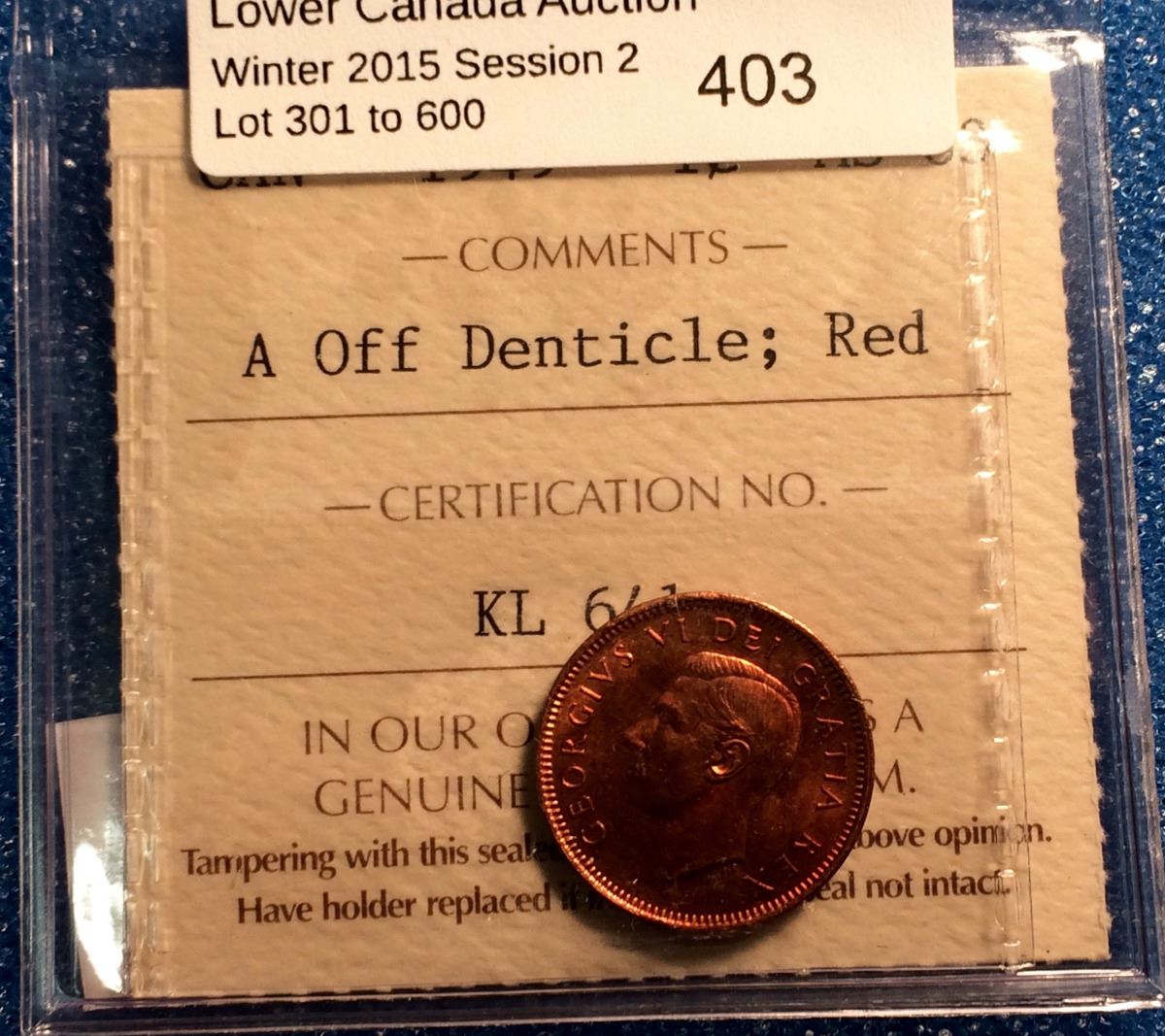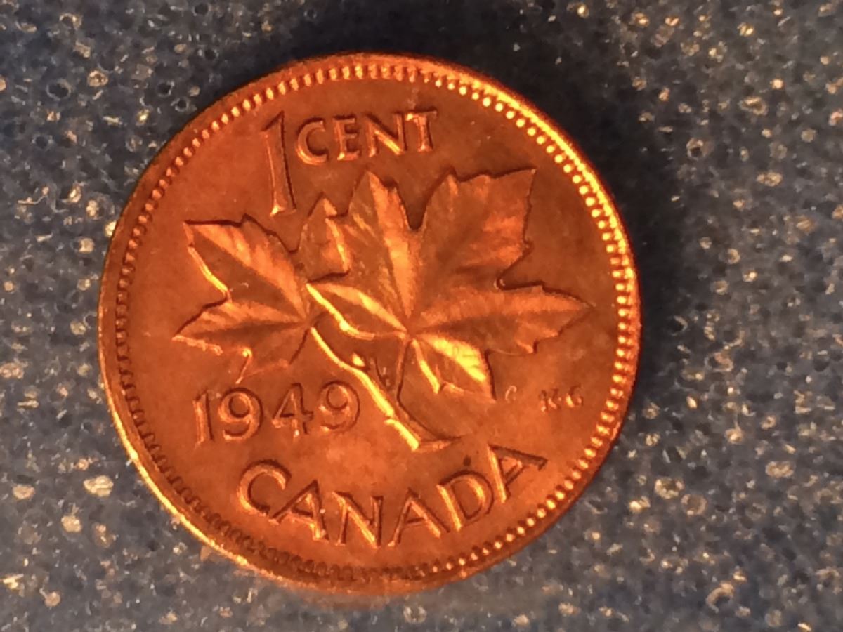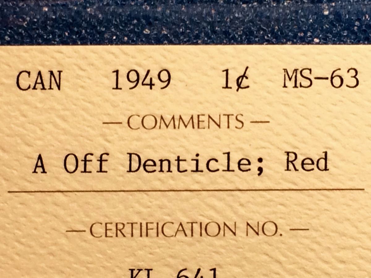 1 cent 1949; ICCS certified MS-63 Red, A Off Denticle.