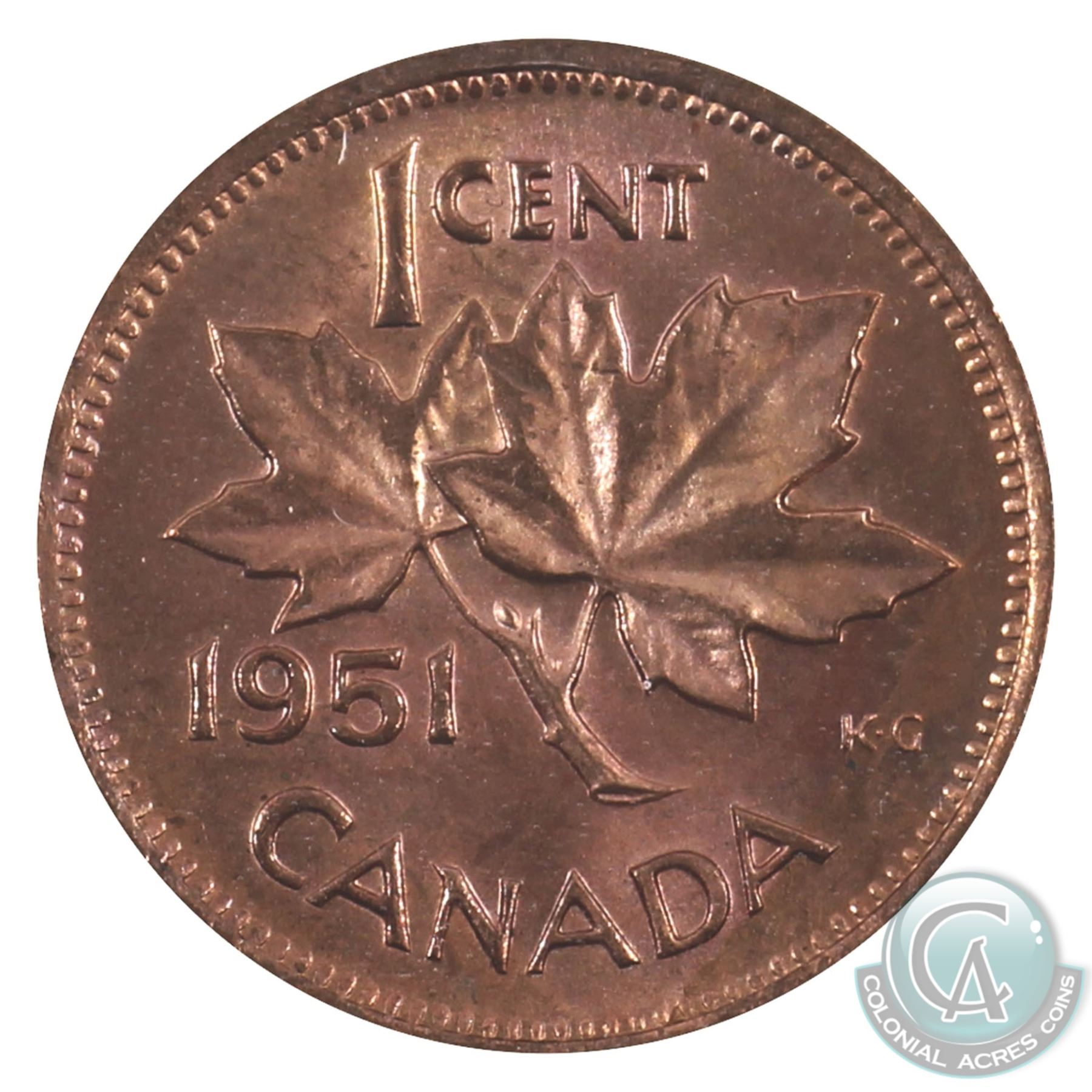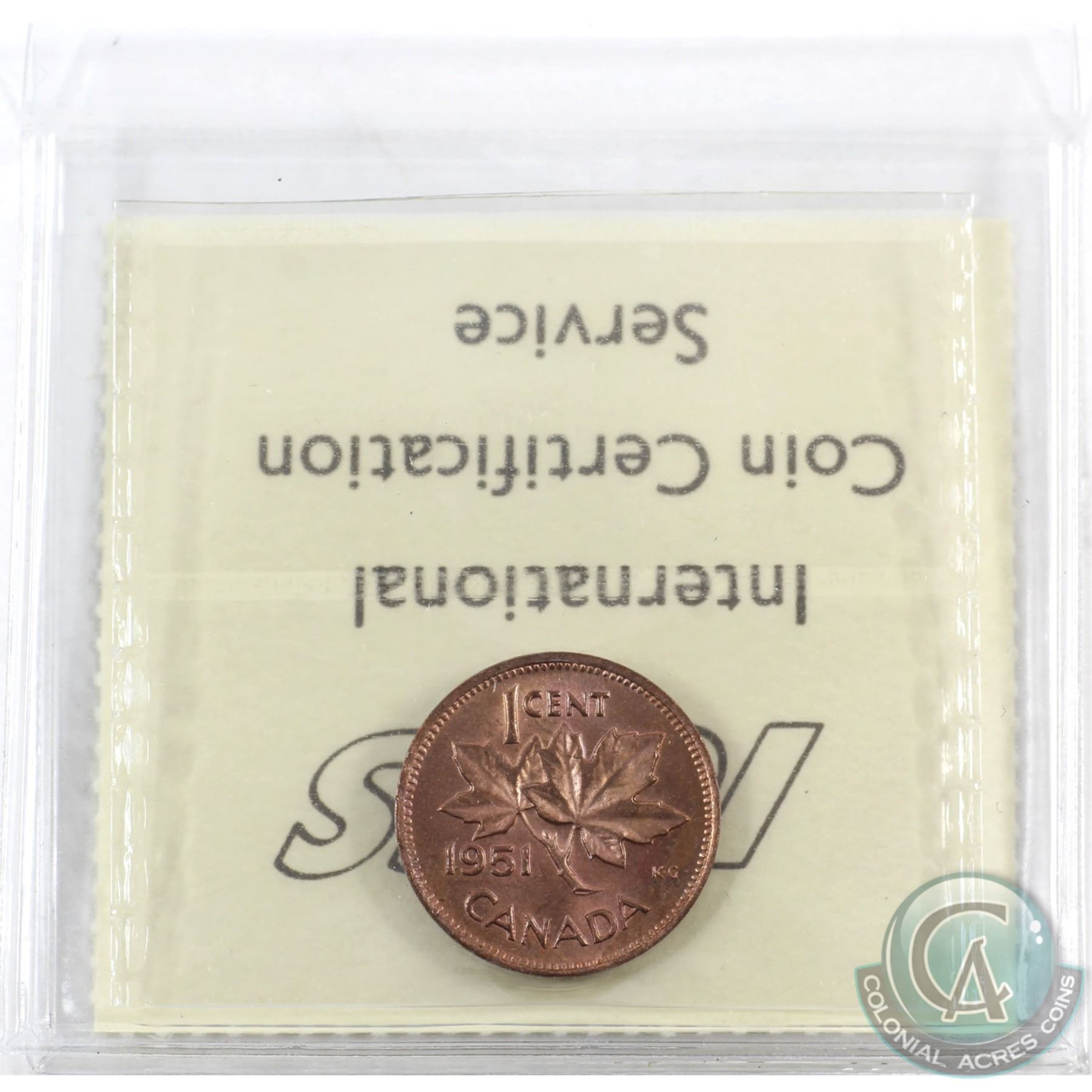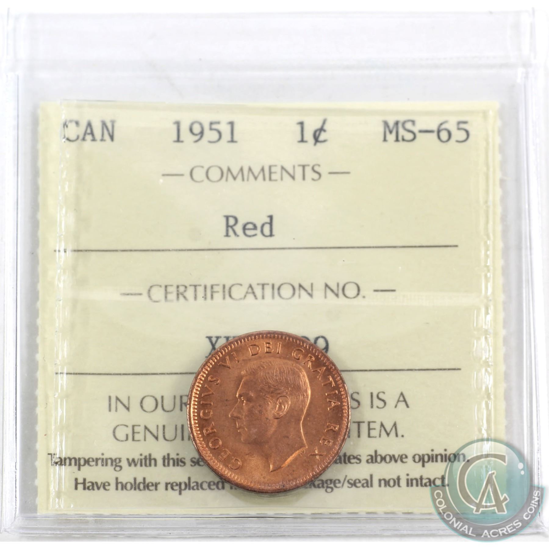 1-cent 1951 ICCS Certified MS-65 Red.