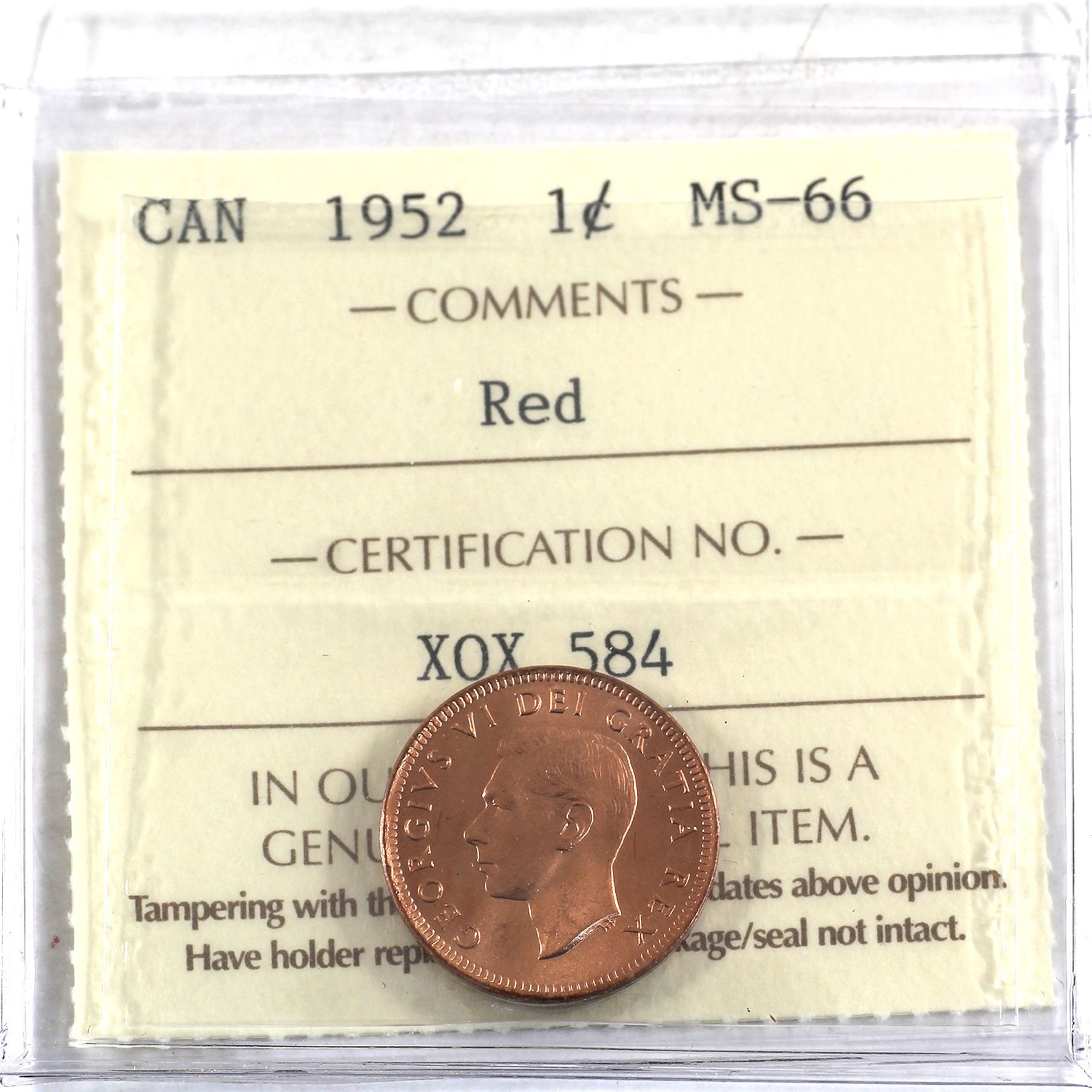 1-cent 1952 ICCS Certified MS-66 RED! A true Gem with exceptional Luster and strike details.