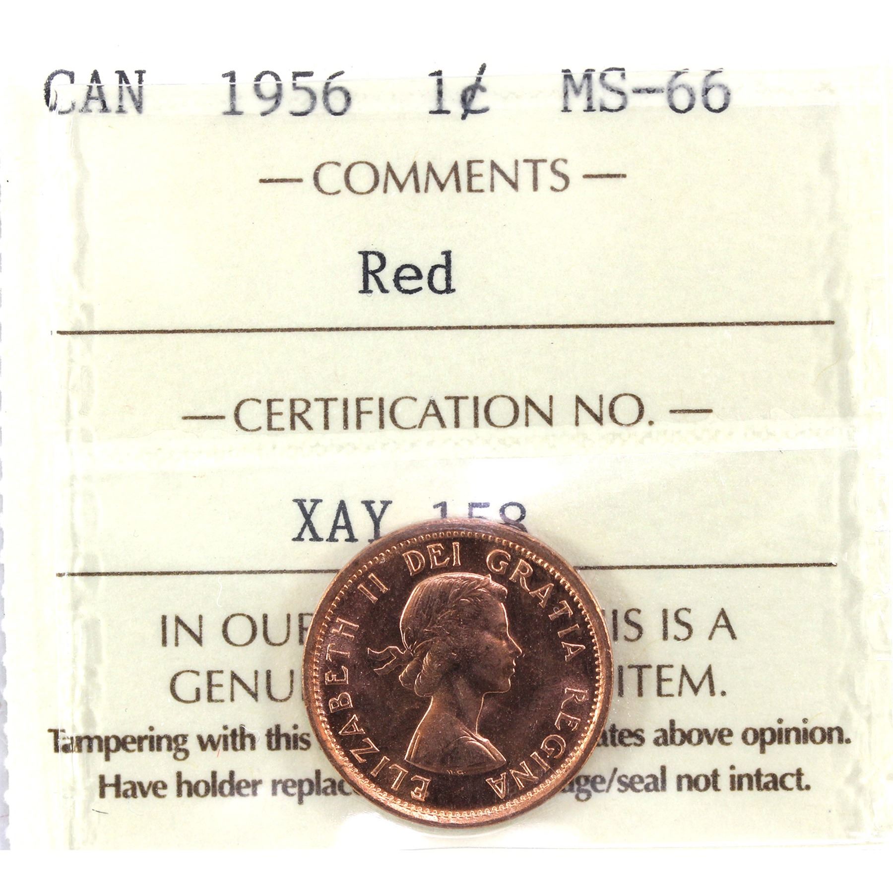 1-cent 1956 ICCS Certified MS66 Red. A Radiant Coin with Exceptional Lustre