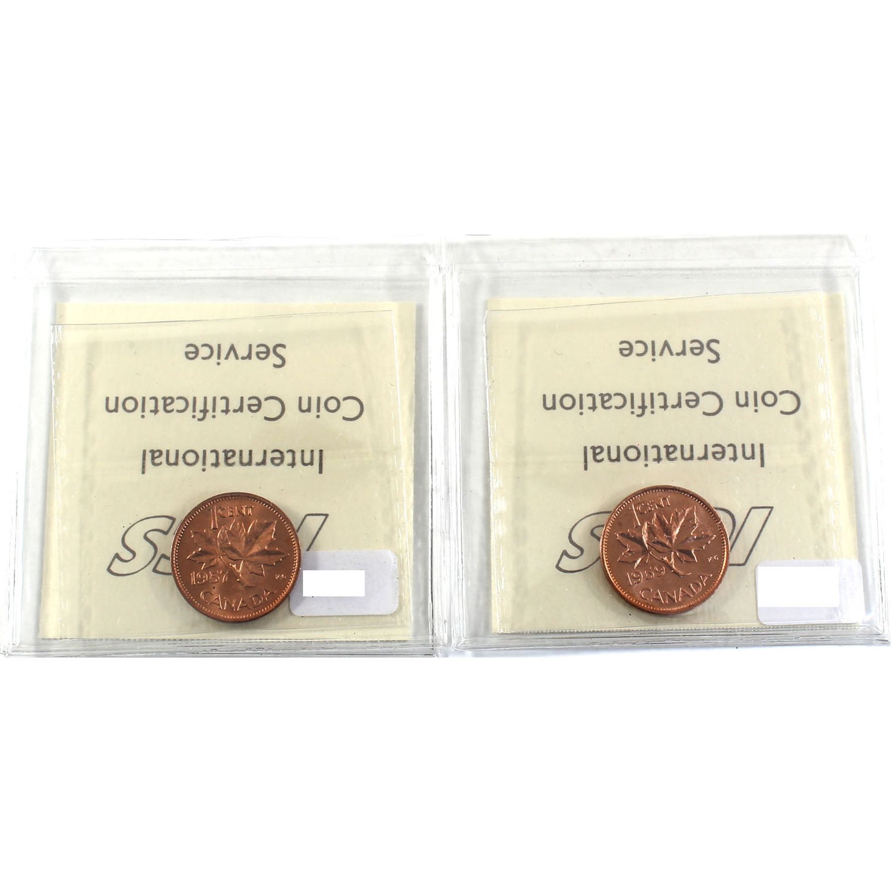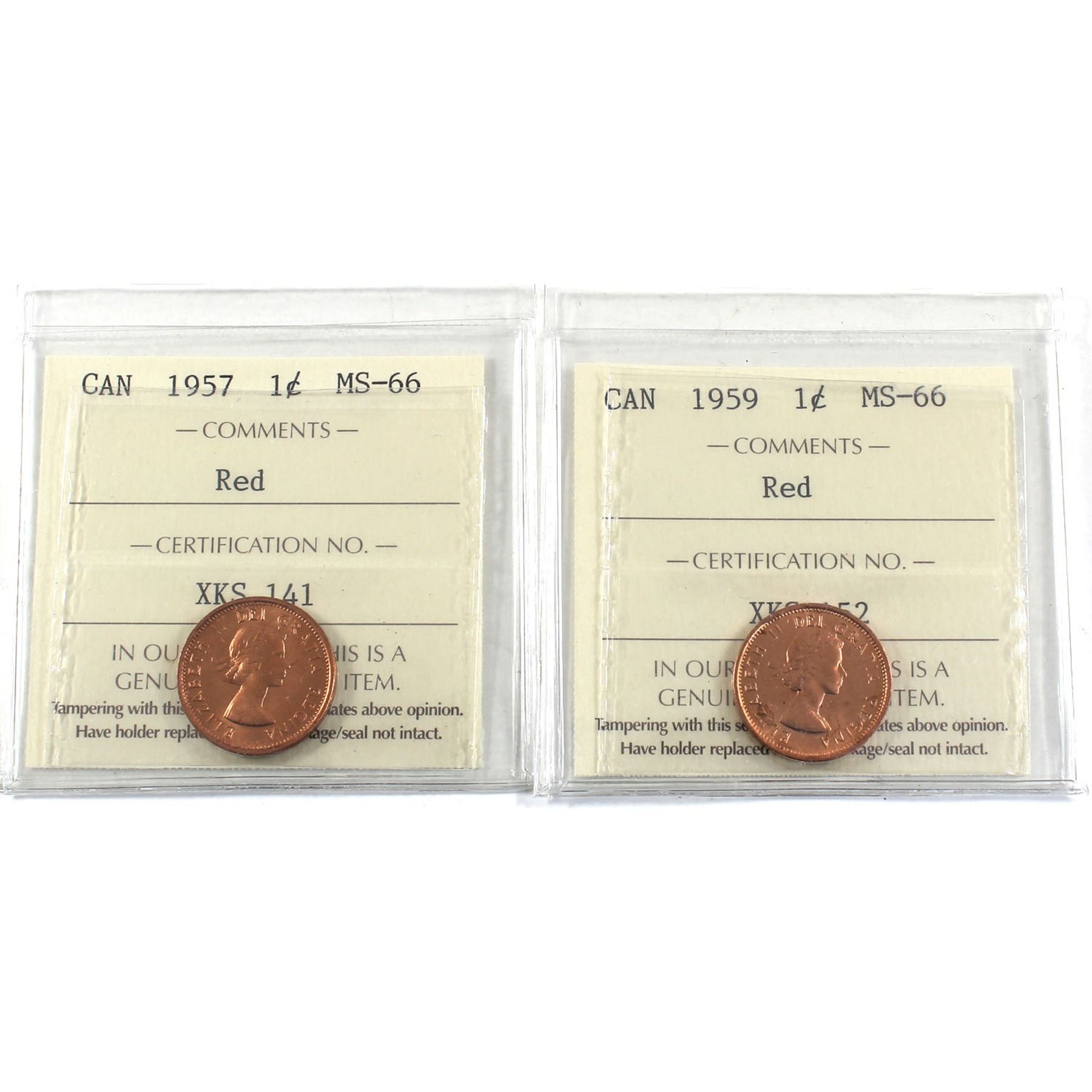 1-cent 1957 & 1959 ICCS Certified MS-66. 2pcs