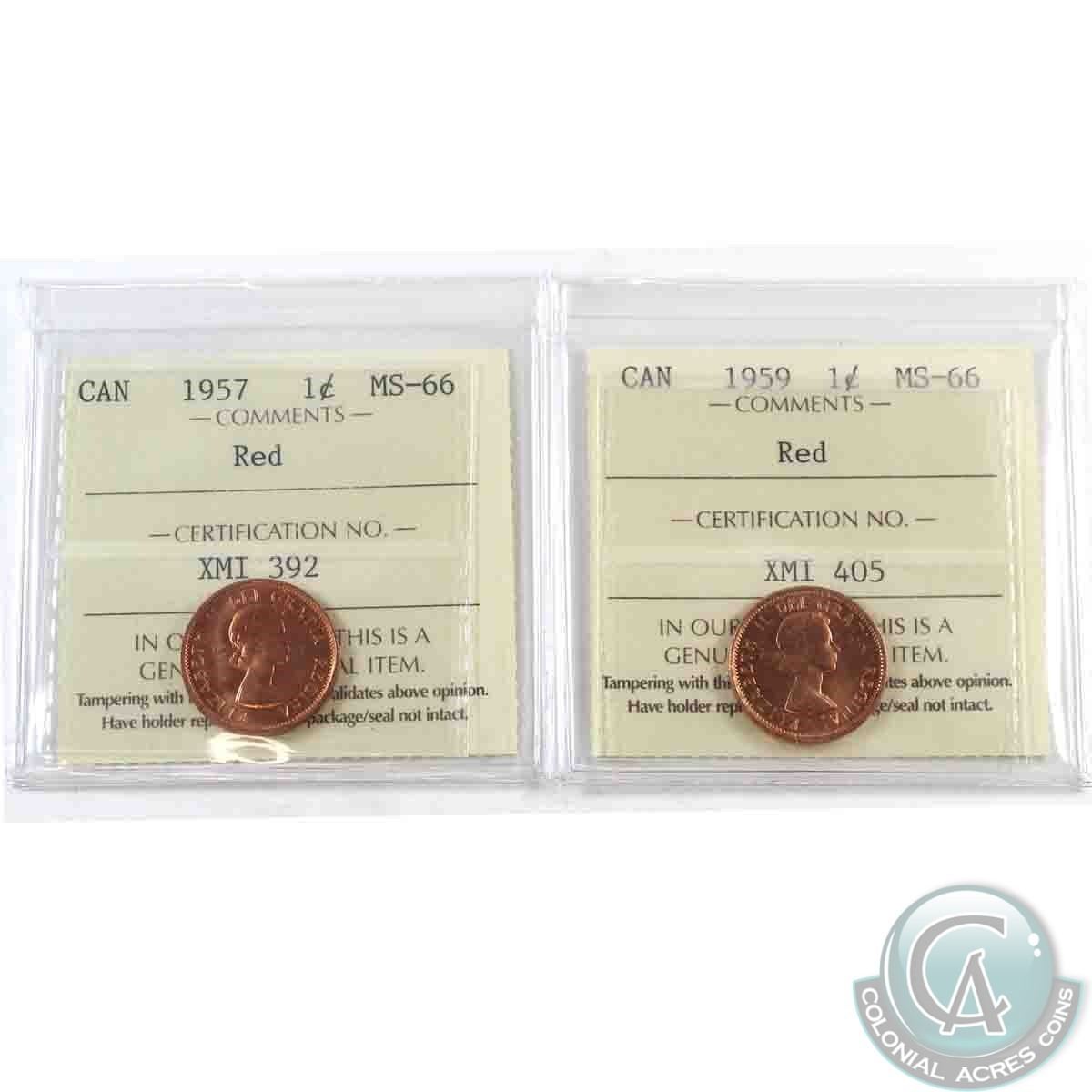 1-cent 1957 & 1959 ICCS Certified MS-66 Red. Both are tied for finest known. 2pcs