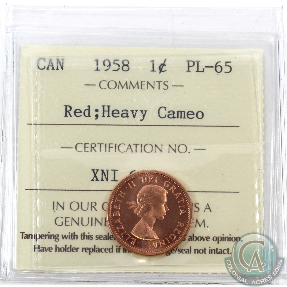 1-cent 1958 ICCS Certified PL-65 Red; Heavy Cameo