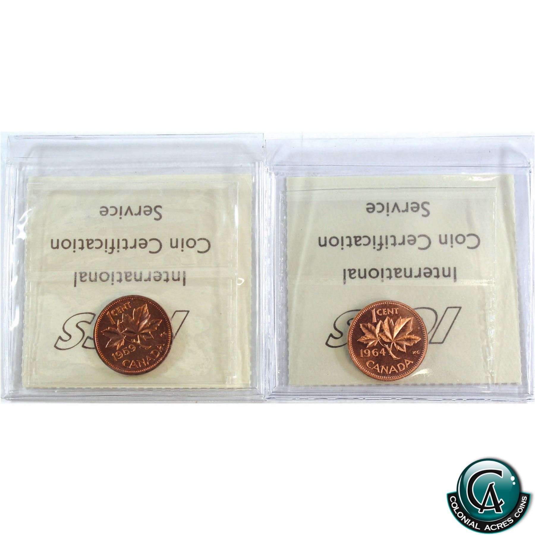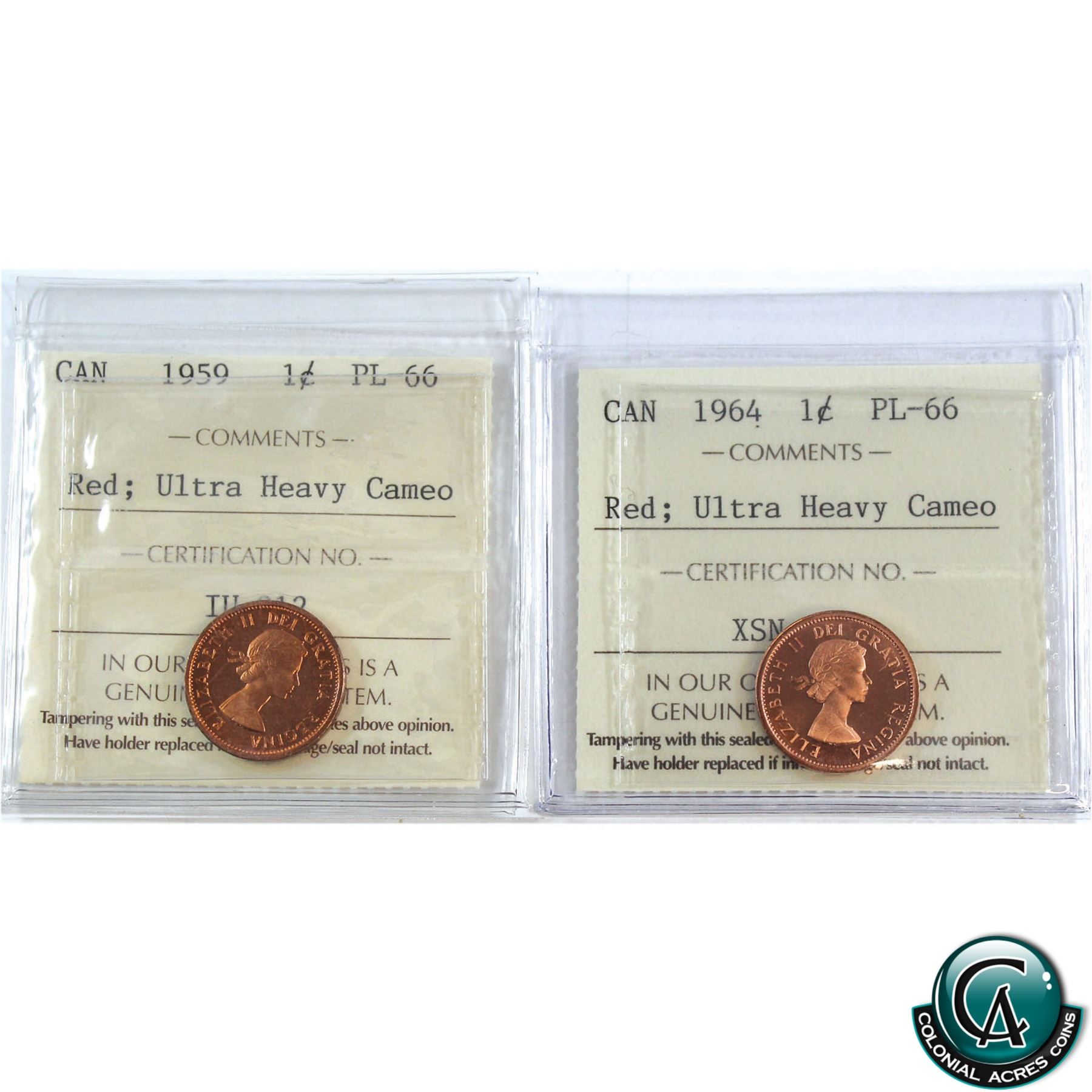 1-cent 1959 & 1964 ICCS Certified PL-66 Red; Ultra Heavy Cameo. 2pcs