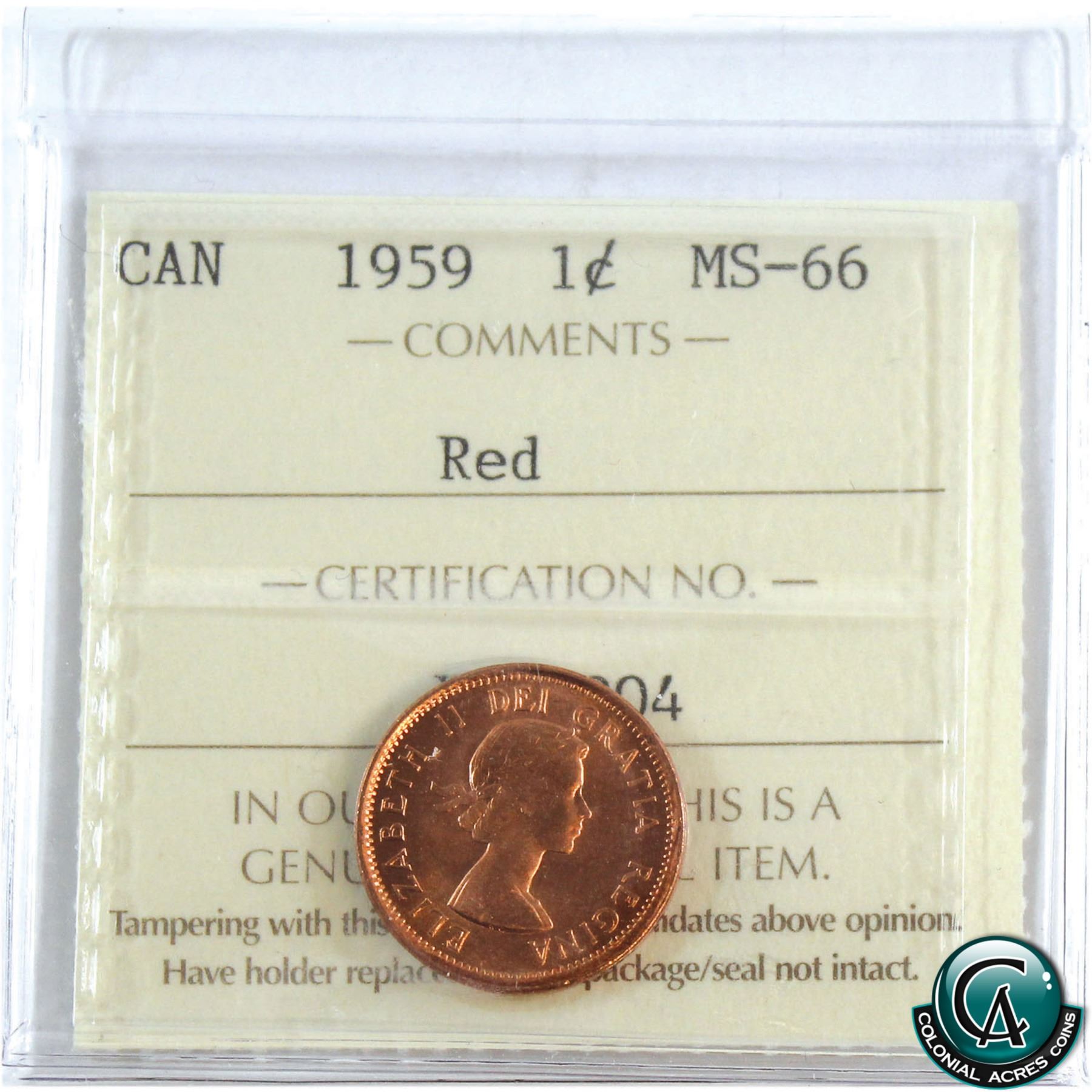 1-cent 1959 ICCS Certified MS-66 Red. Contains a vibrant orange glow throughout.