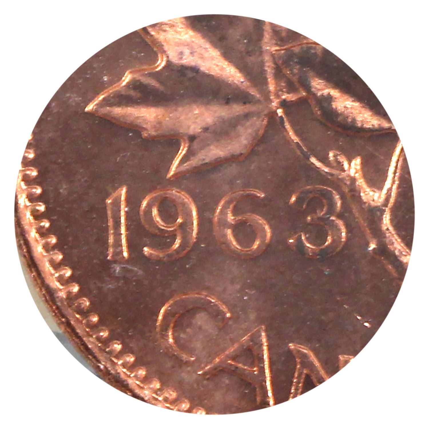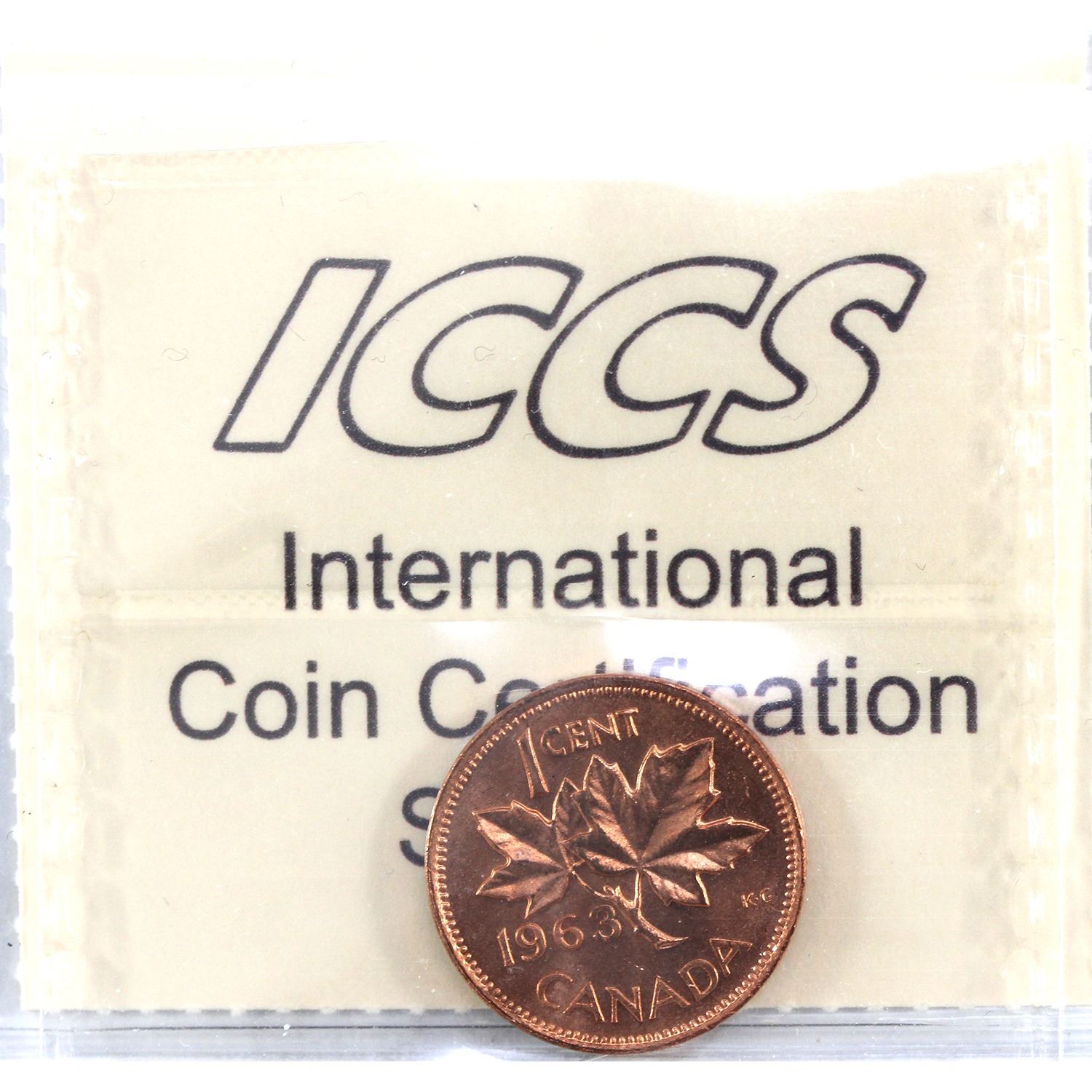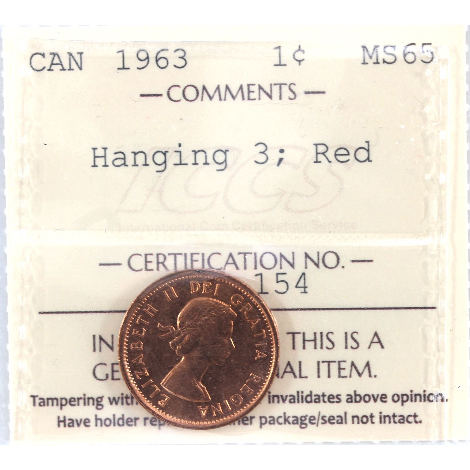 1-cent 1963 Hanging 3 ICCS MS65 Red. Attractive Lustre and Bright Flame-Red Colouration