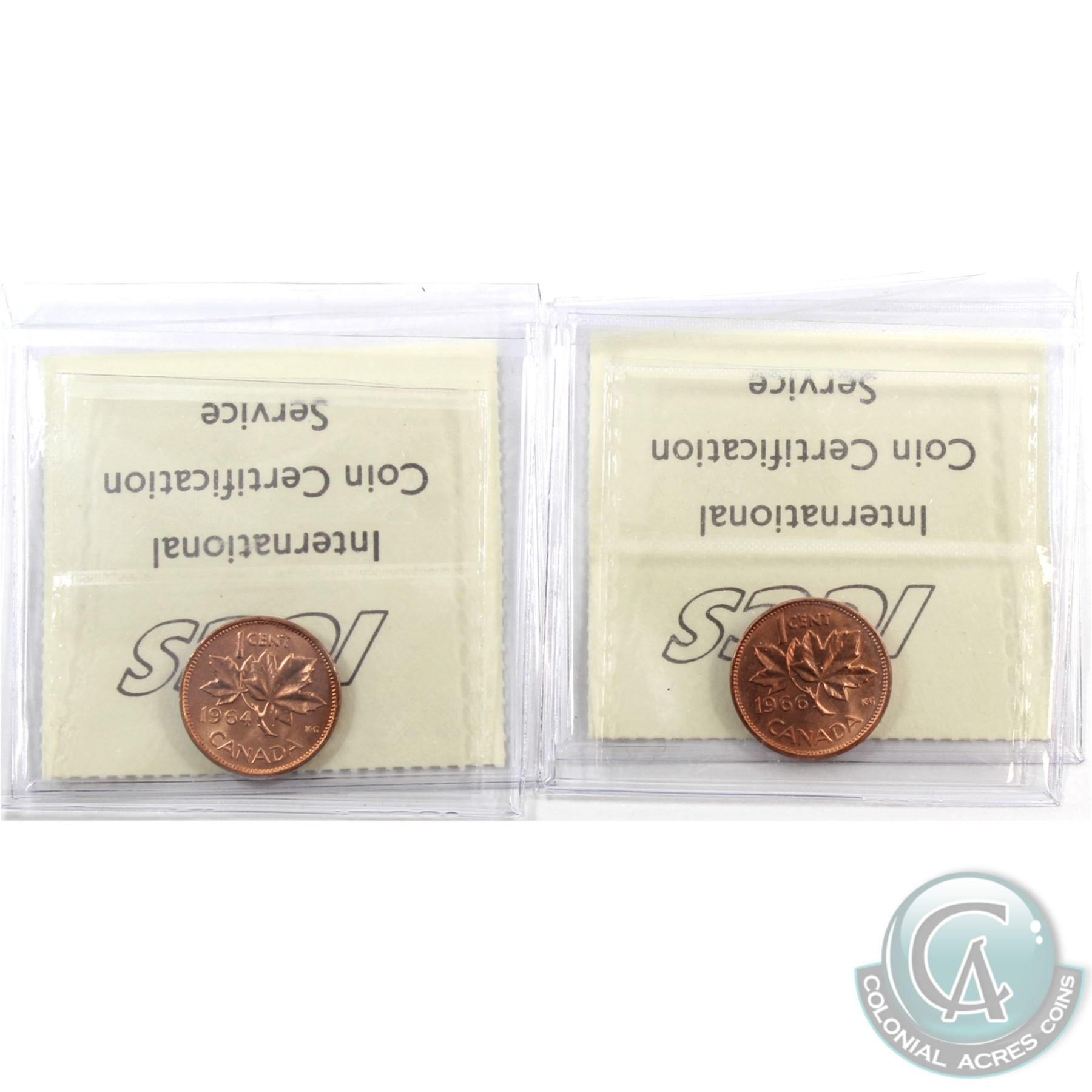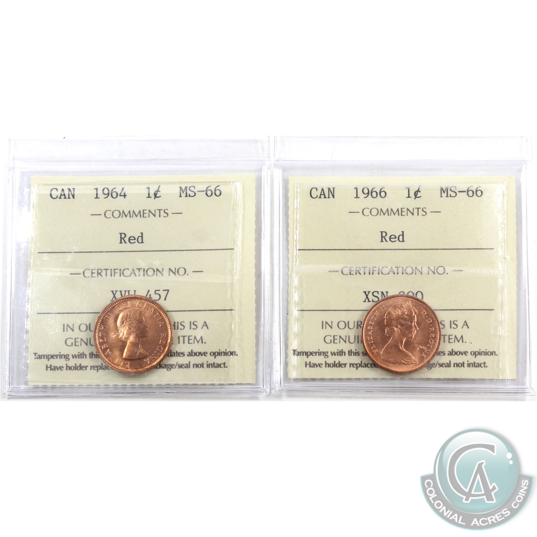 1-cent 1964 & 1966 ICCS Certified MS-66 Red. 2pcs