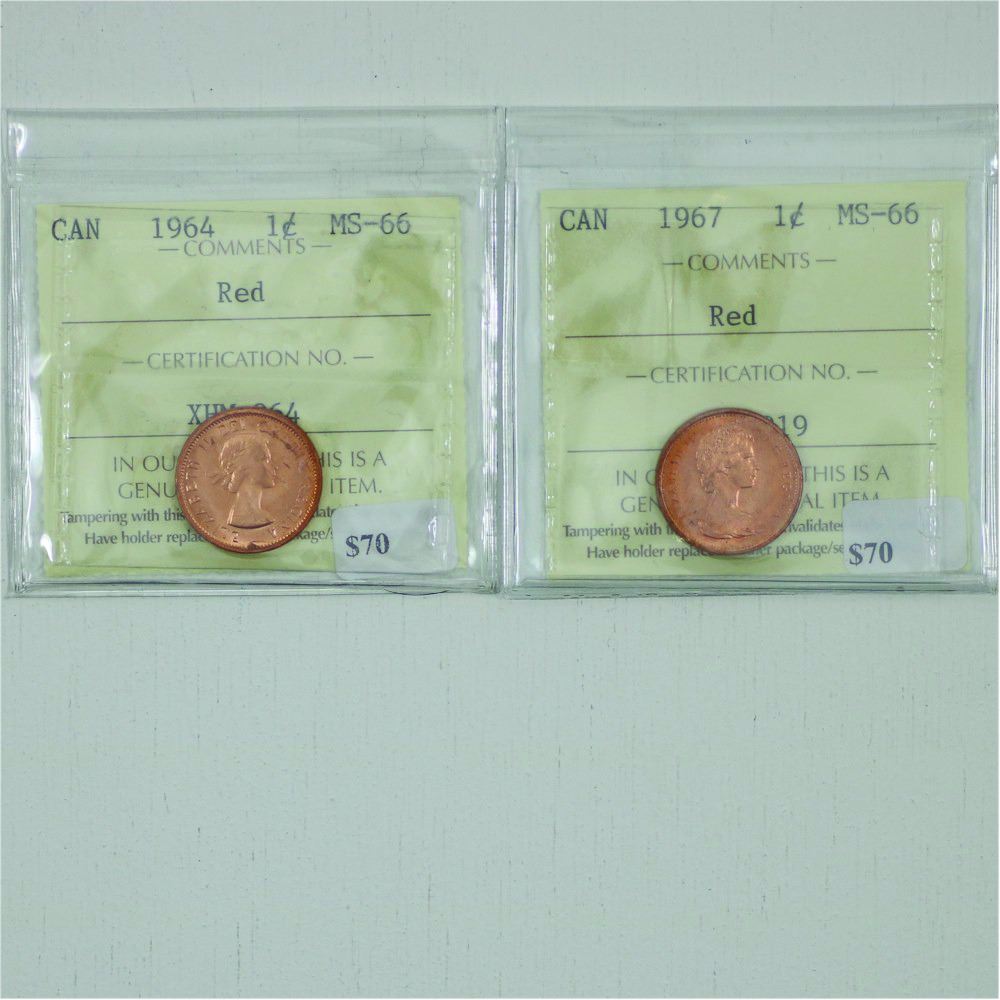 1-cent 1964 & 1967 ICCS Certifed MS-66 Red
