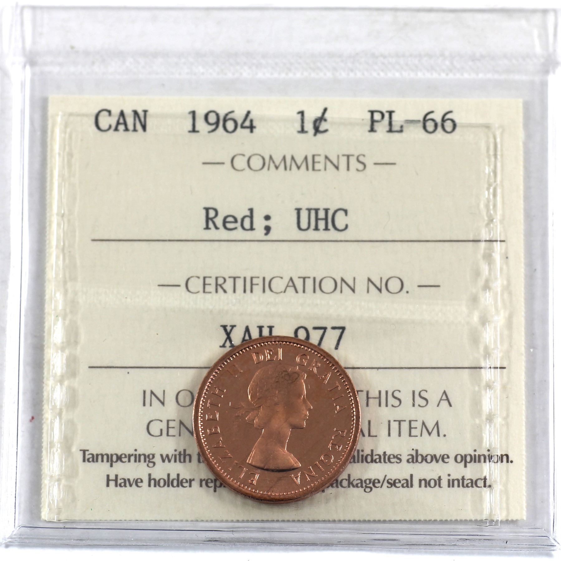 1-cent 1964 ICCS Certified PL-66 Red; Ultra Heavy Cameo.