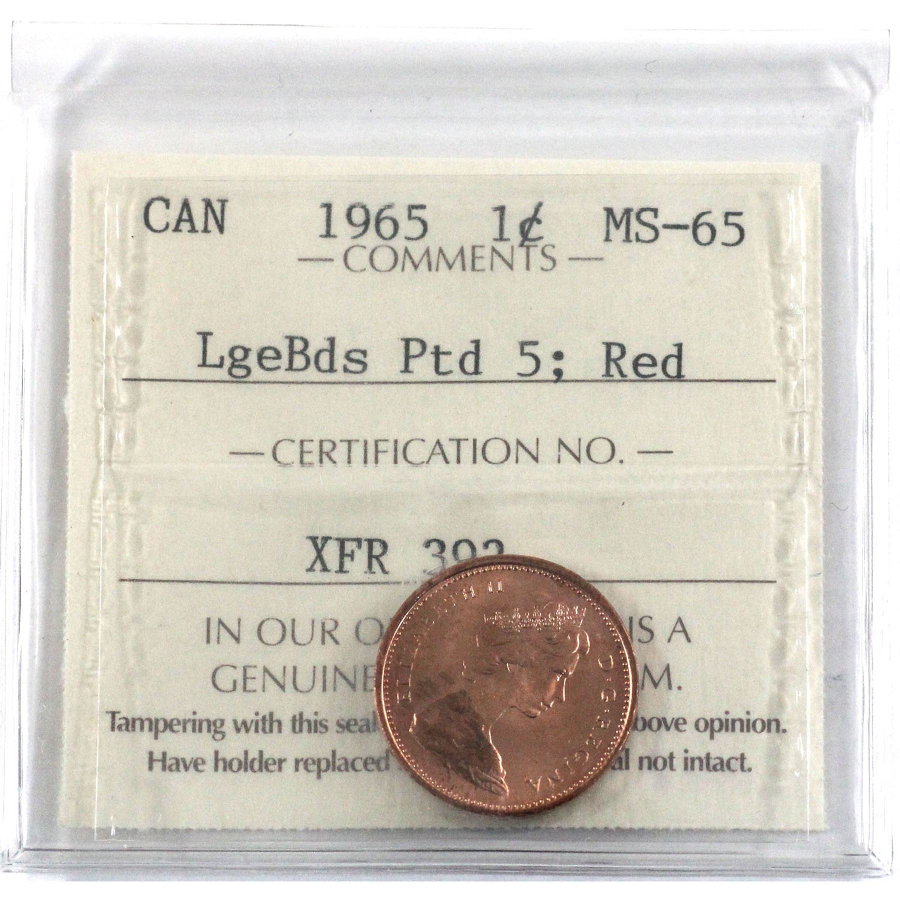 1-cent 1965 LgeBds Ptd 5 ICCS Certified MS-65 RED! (Variety 4)