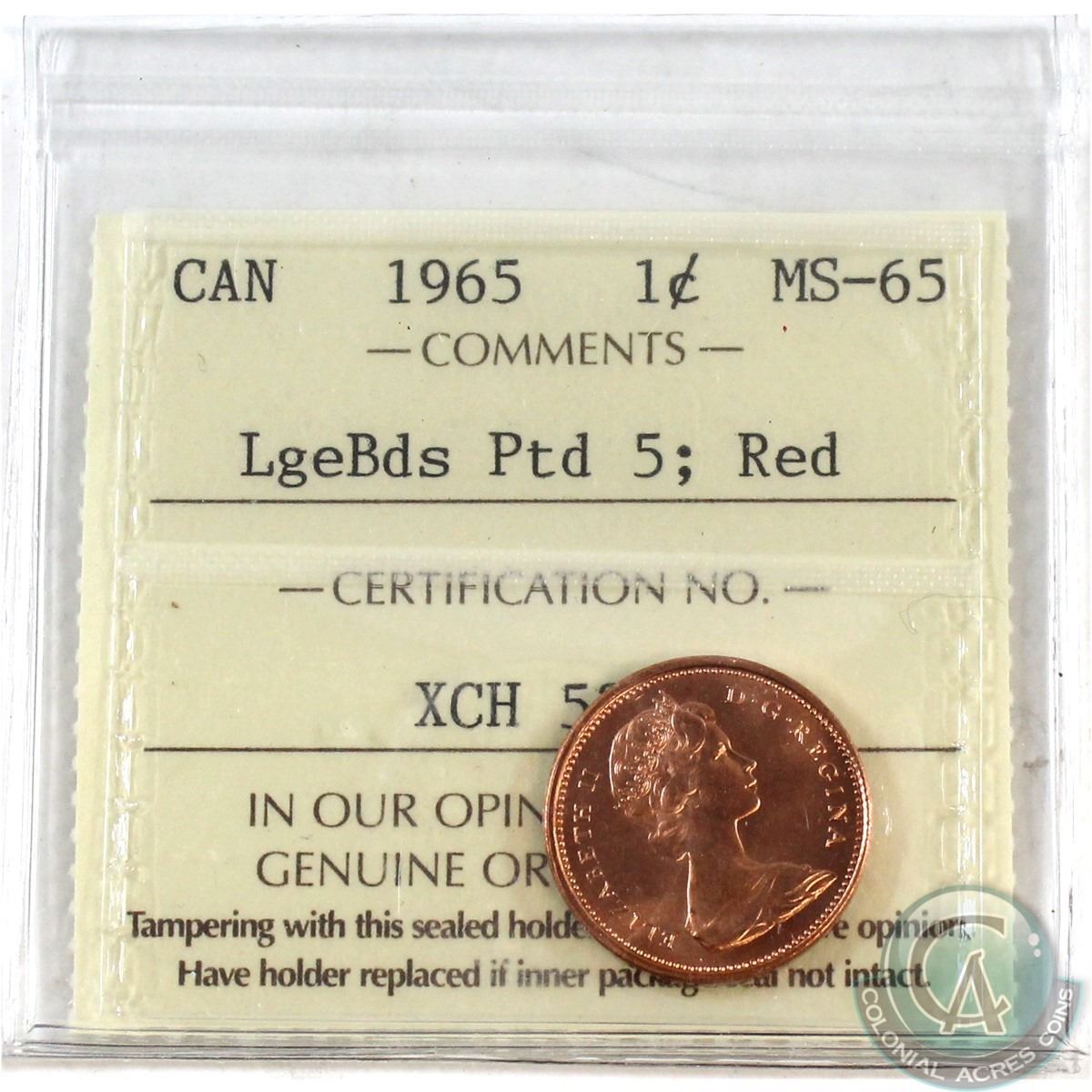 1-cent 1965 LgeBds Ptd 5 ICCS Certified MS-65 Red.