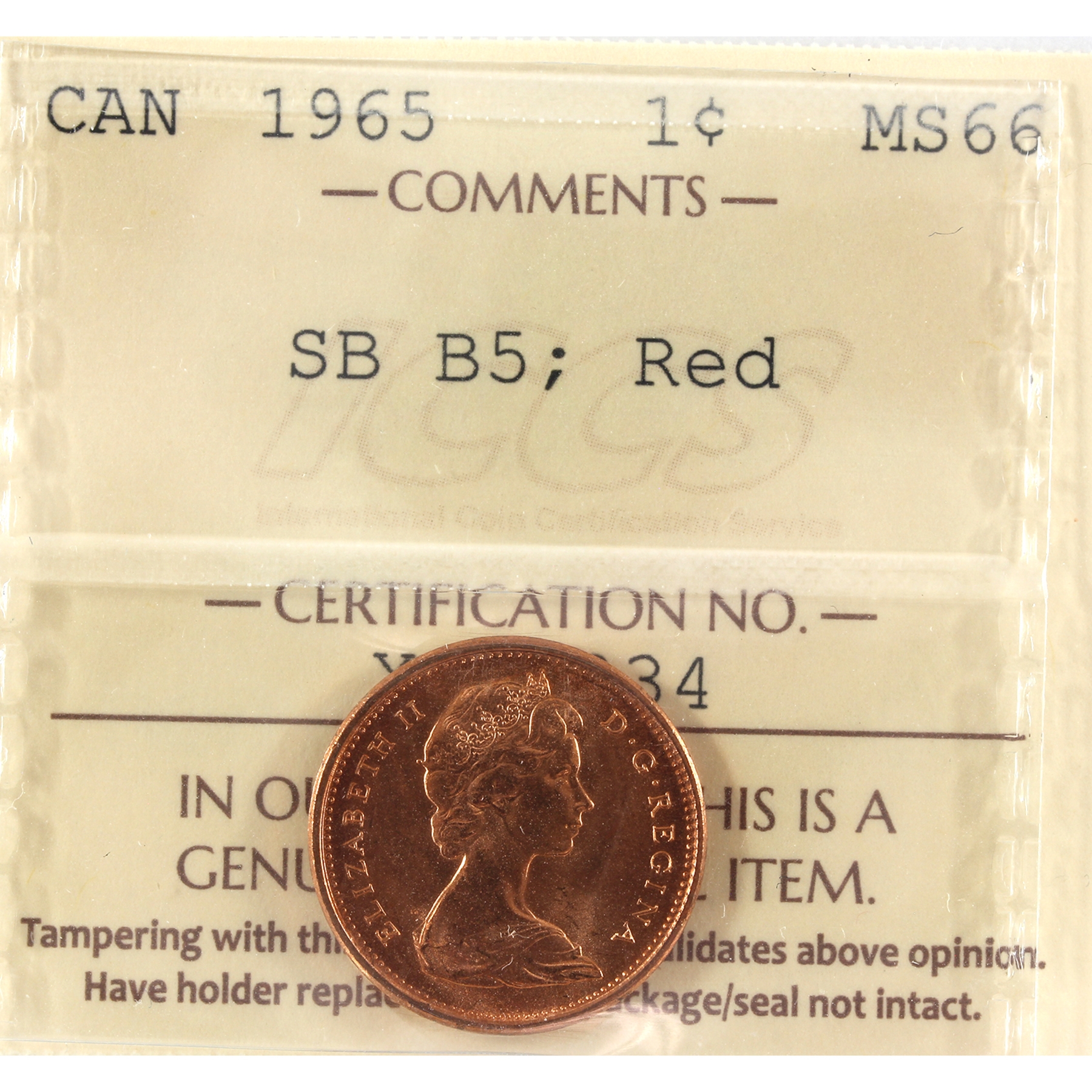 1-cent 1965 SB B5 ICCS MS66 Red