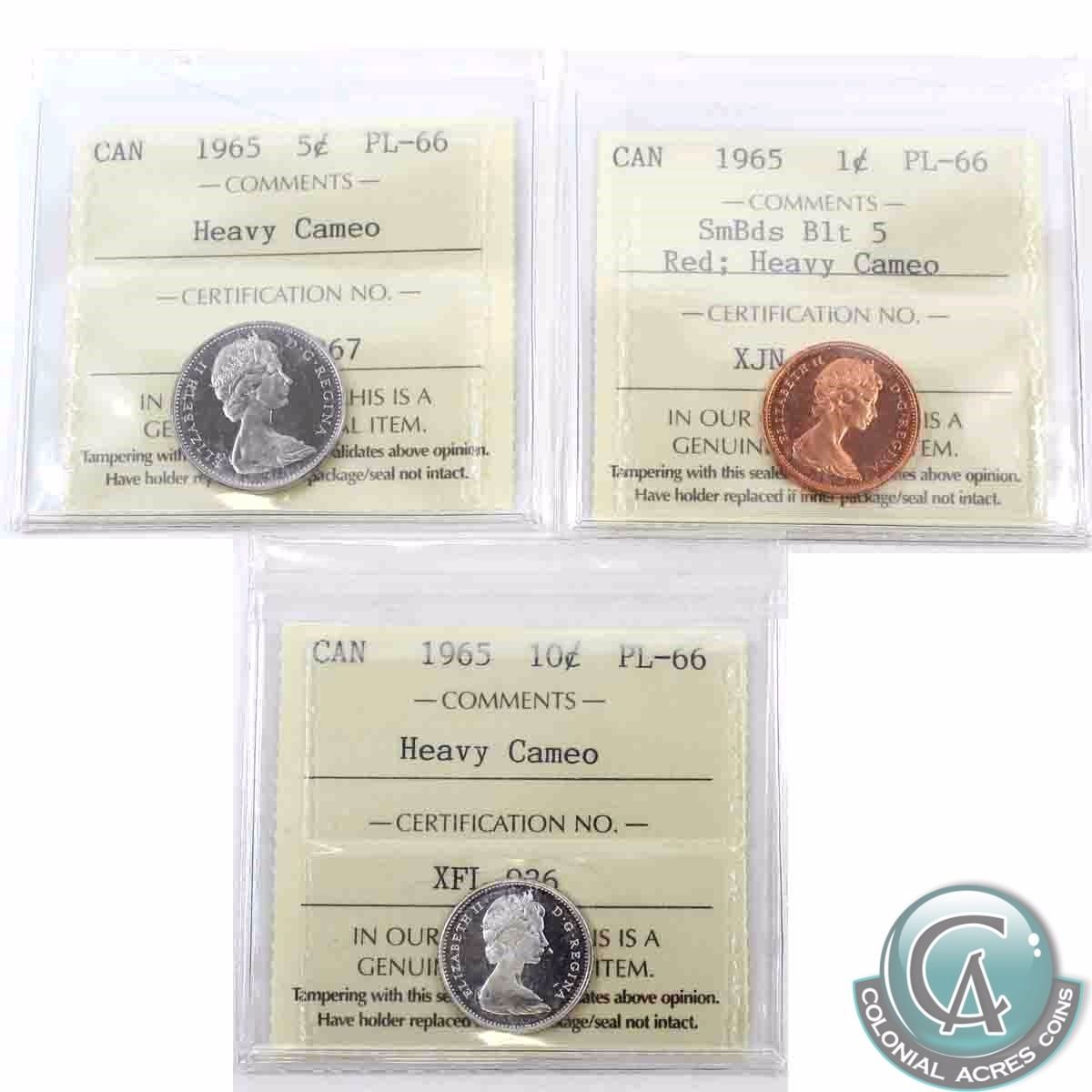 1-cent 1965 Small Beads Blunt 5, 5-cent & 10-cent ICCS Certified PL-66 Heavy Cameo. 5-cent is tied for the finest known. 3pcs
