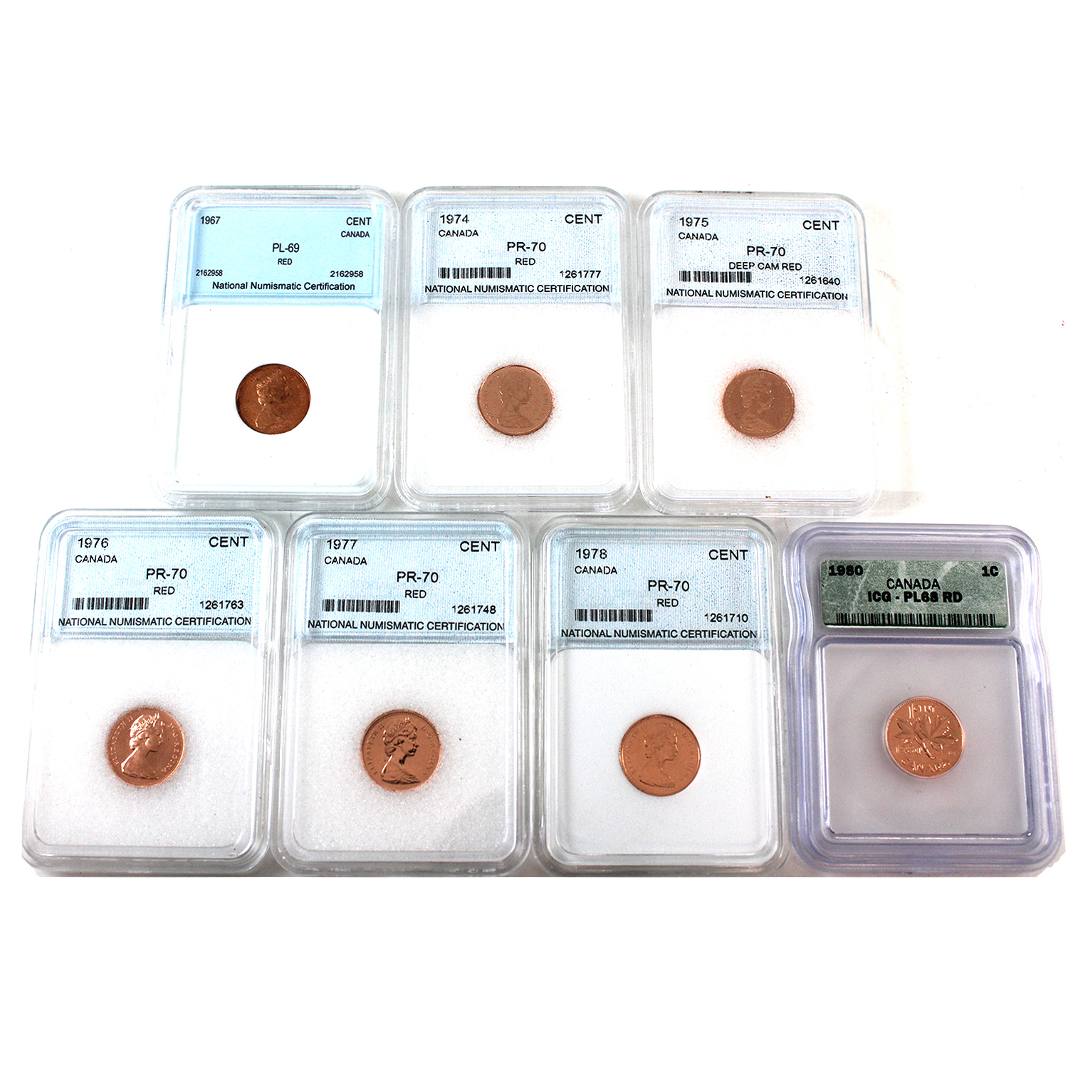 INCLUDES: 1967, 1974, 1975 Deep Cameo, 1976, 1977, 1978 & 1980. All are PR70 except 1967 is PL69 and 1980 is PL68. 7pcs.