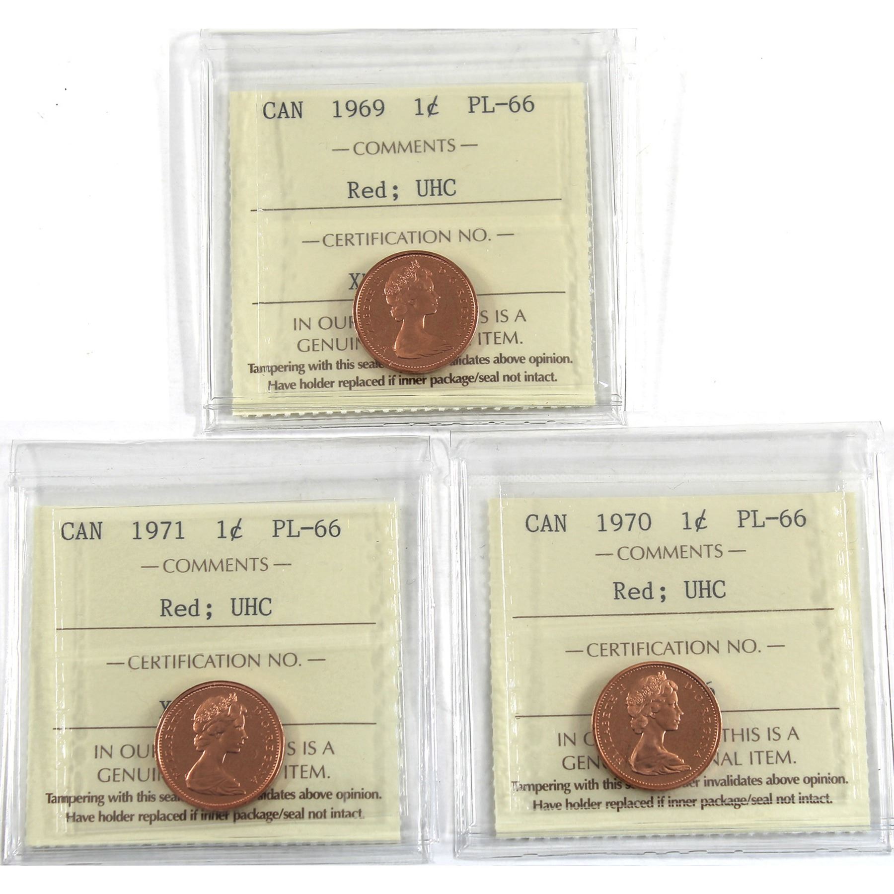 1-cent 1969, 1970, & 1971 all ICCS Certified PL-66 ULTRA HEAVY CAMEO!