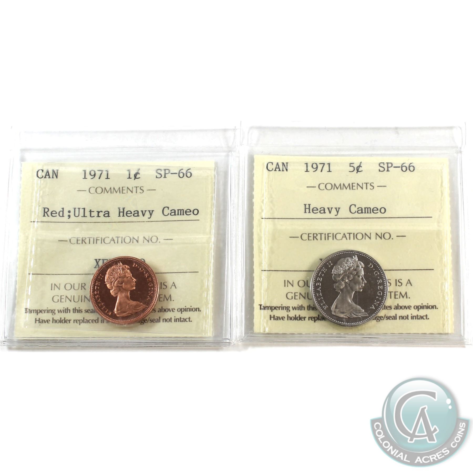1-cent 1971 ICCS Certified SP-66 Red Ultra Heavy Cameo & 1971 5-cent ICCS SP-66 Heavy Cameo. 2pcs