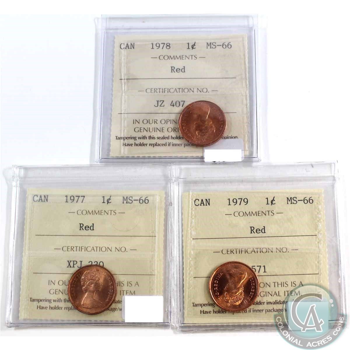 1-cent 1977, 1978, & 1979 all ICCS Certified MS-66 RED! A great lot for someone looking to upgrade! 3pcs