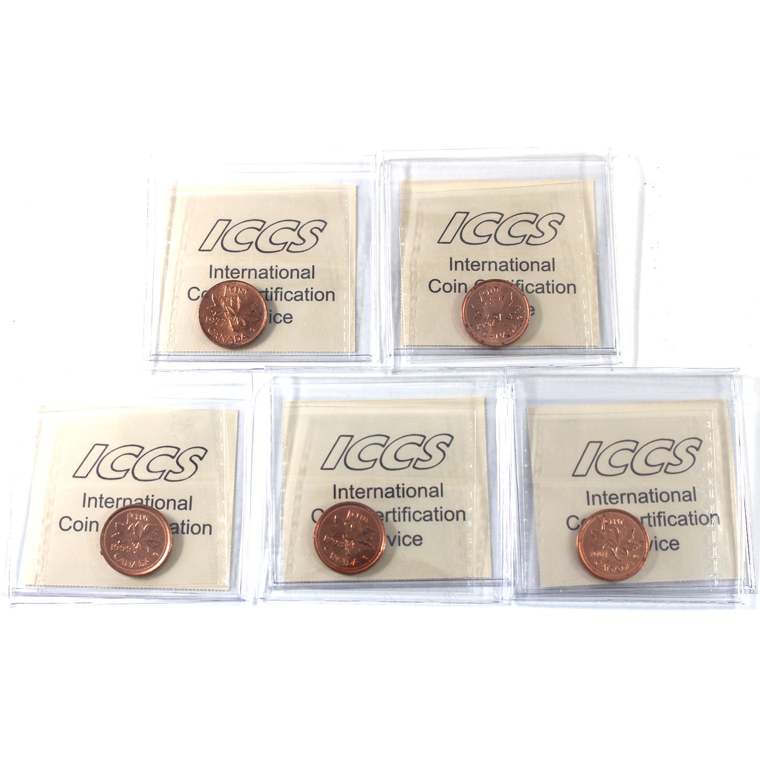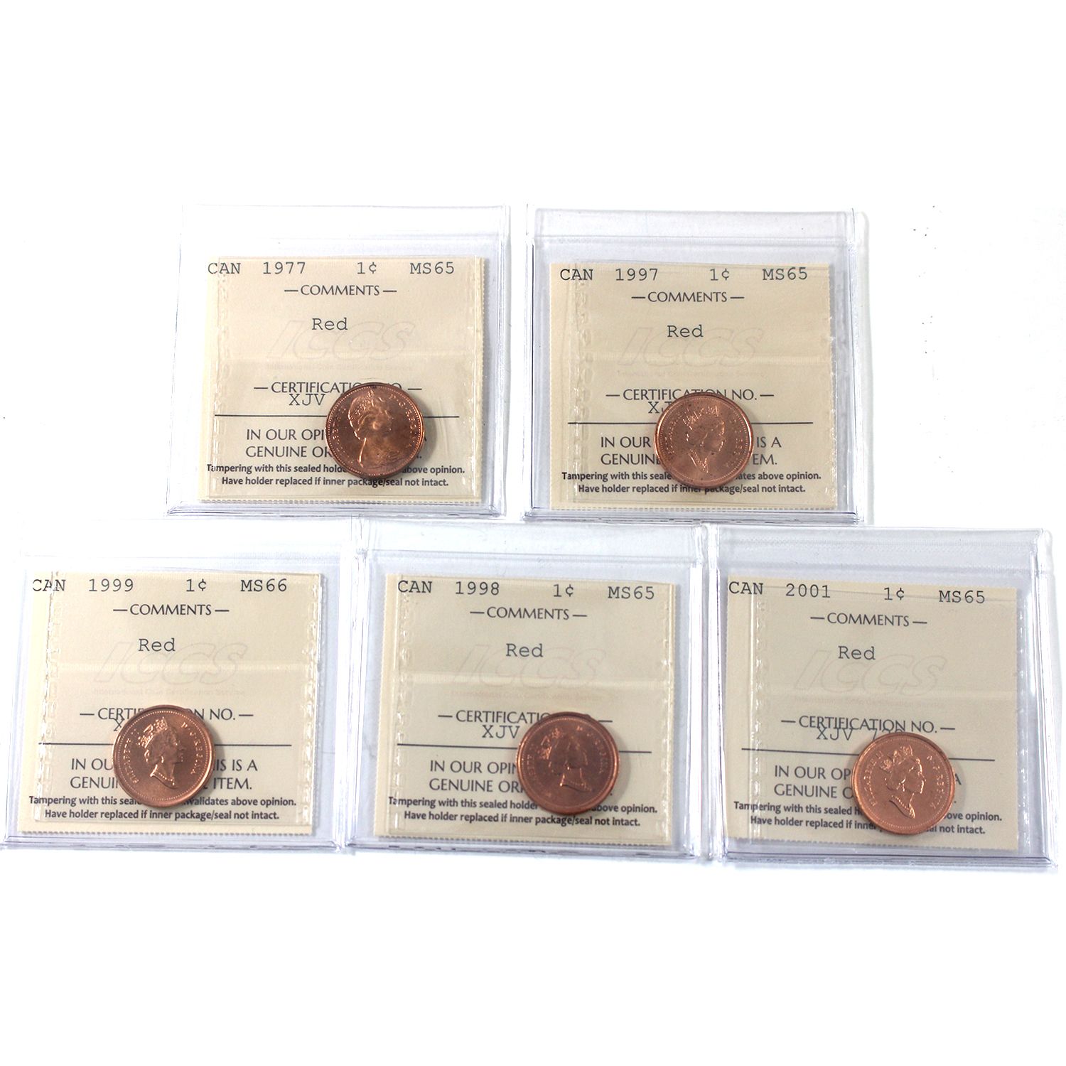 INCLUDES: 1977 MS65, 1997 MS65, 1999 MS66, 1998 MS65 & 2001 MS65. 5pcs.