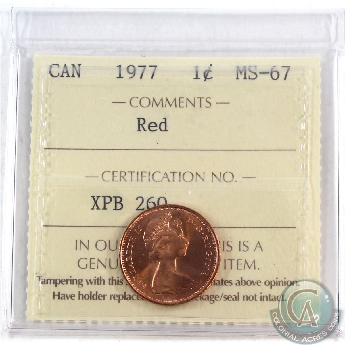 1-cent 1977 ICCS Certified MS-67 RED! Tied for the Highest grade by ICCS!