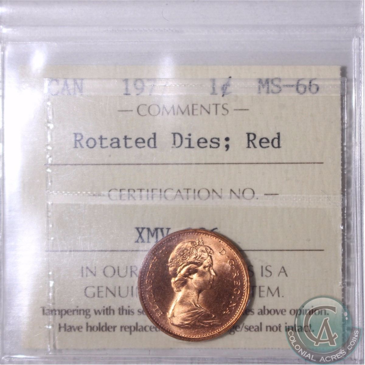 1-cent 1977 Rotated Dies ICCS Certified MS-66; Red (minor rotation)