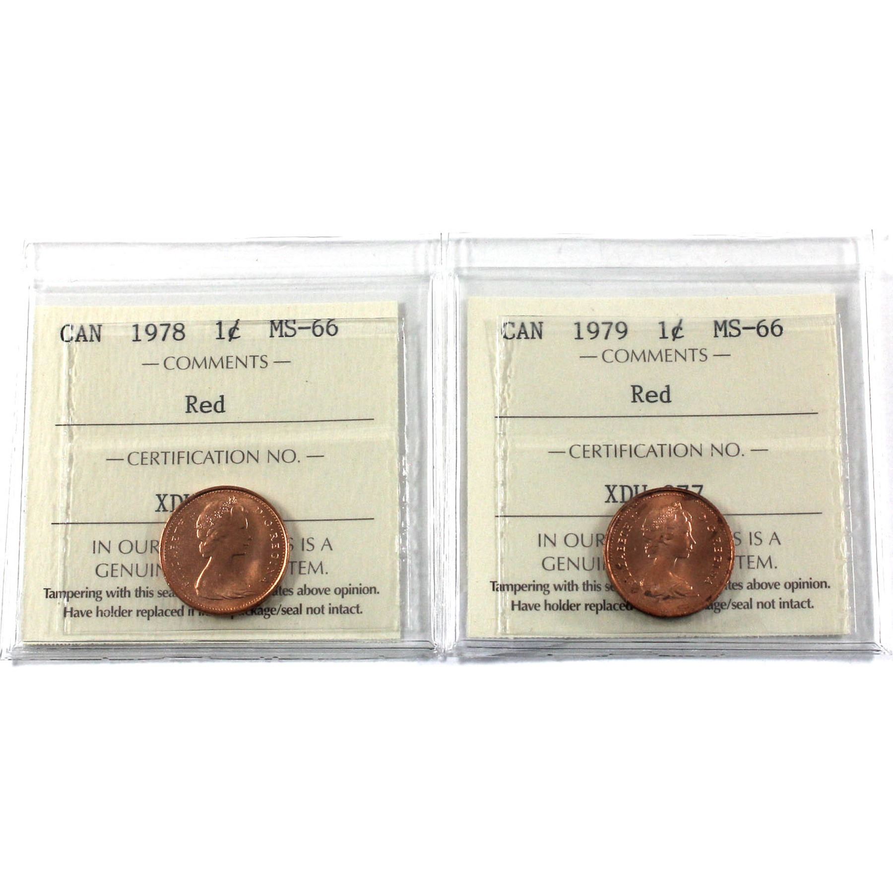 1-cent 1978 & 1979 ICCS Certified MS-66 Red. 2pcs