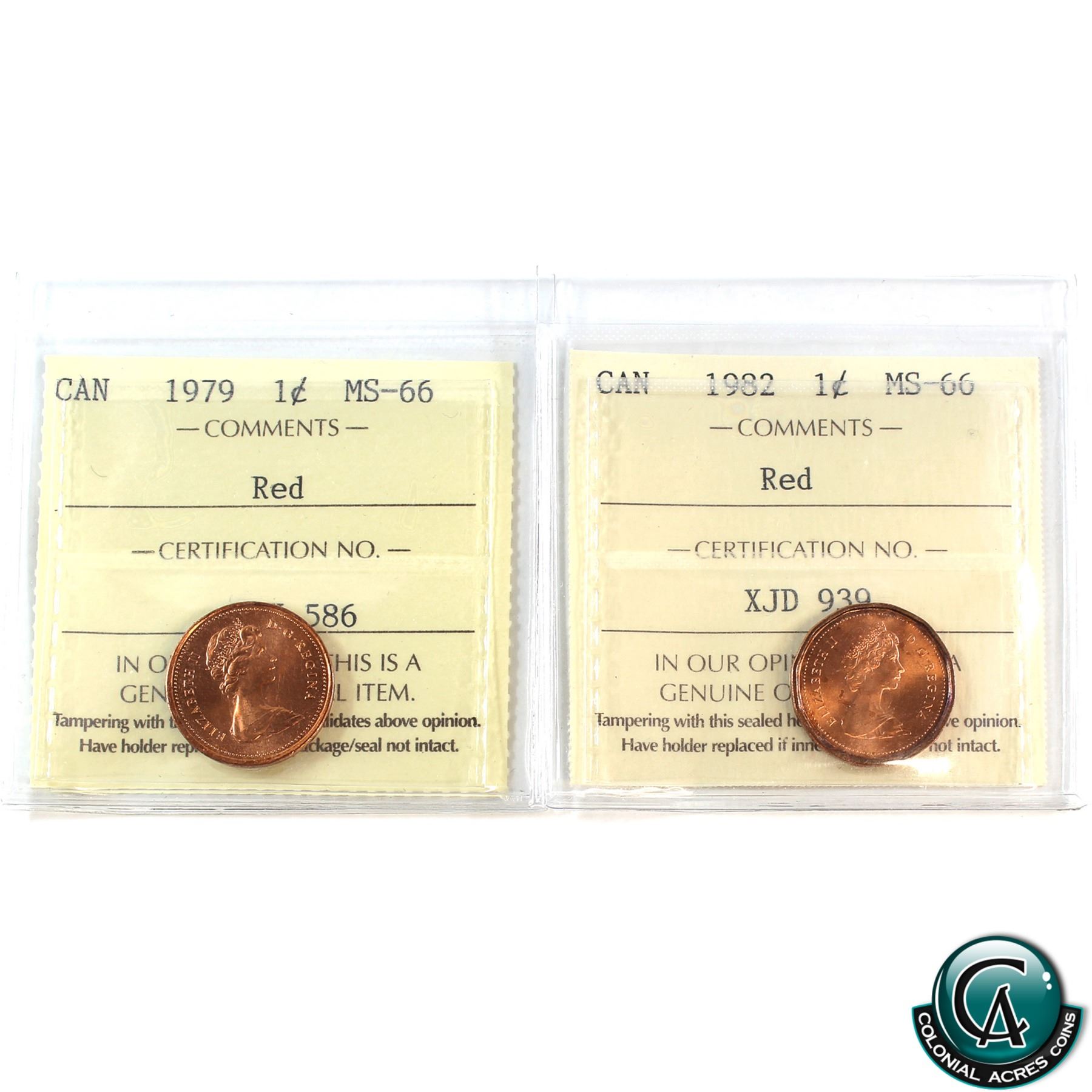 1-cent 1979 & 1982 ICCS Certified MS-66 Red. 2pcs